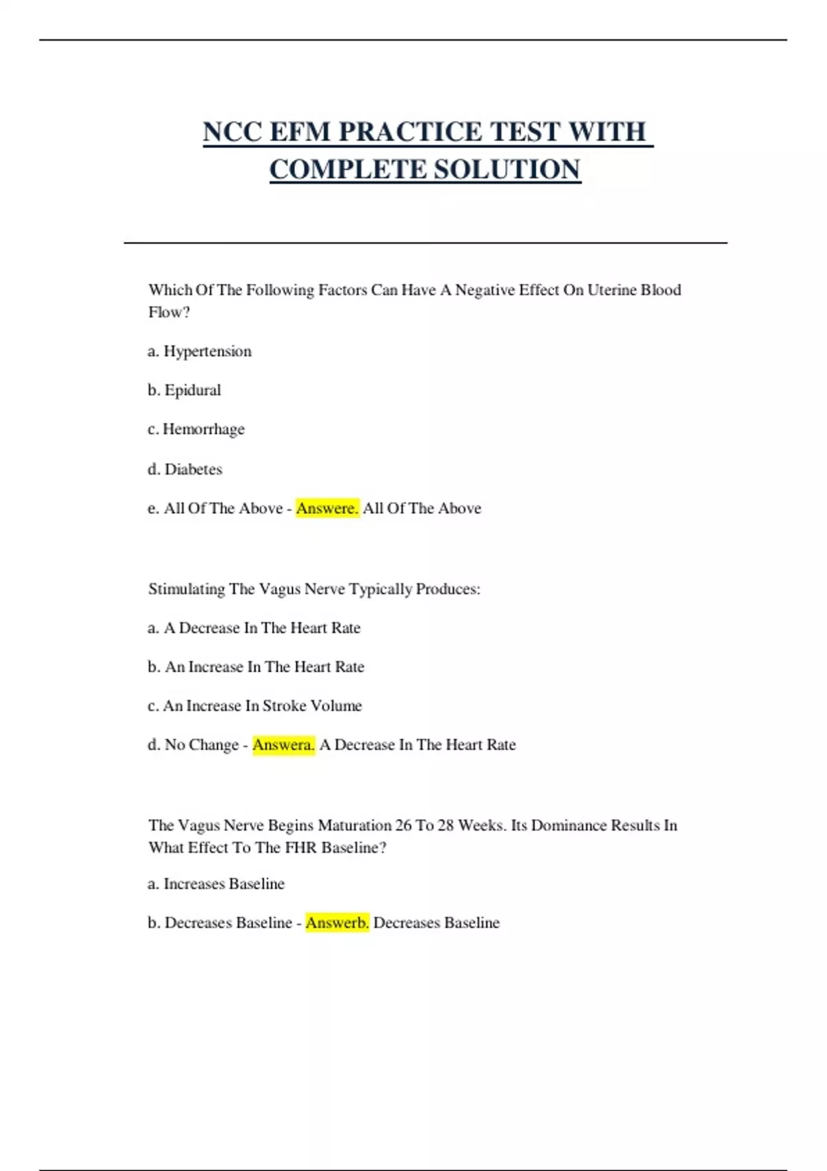 NCC EFM PRACTICE TEST WITH COMPLETE SOLUTION