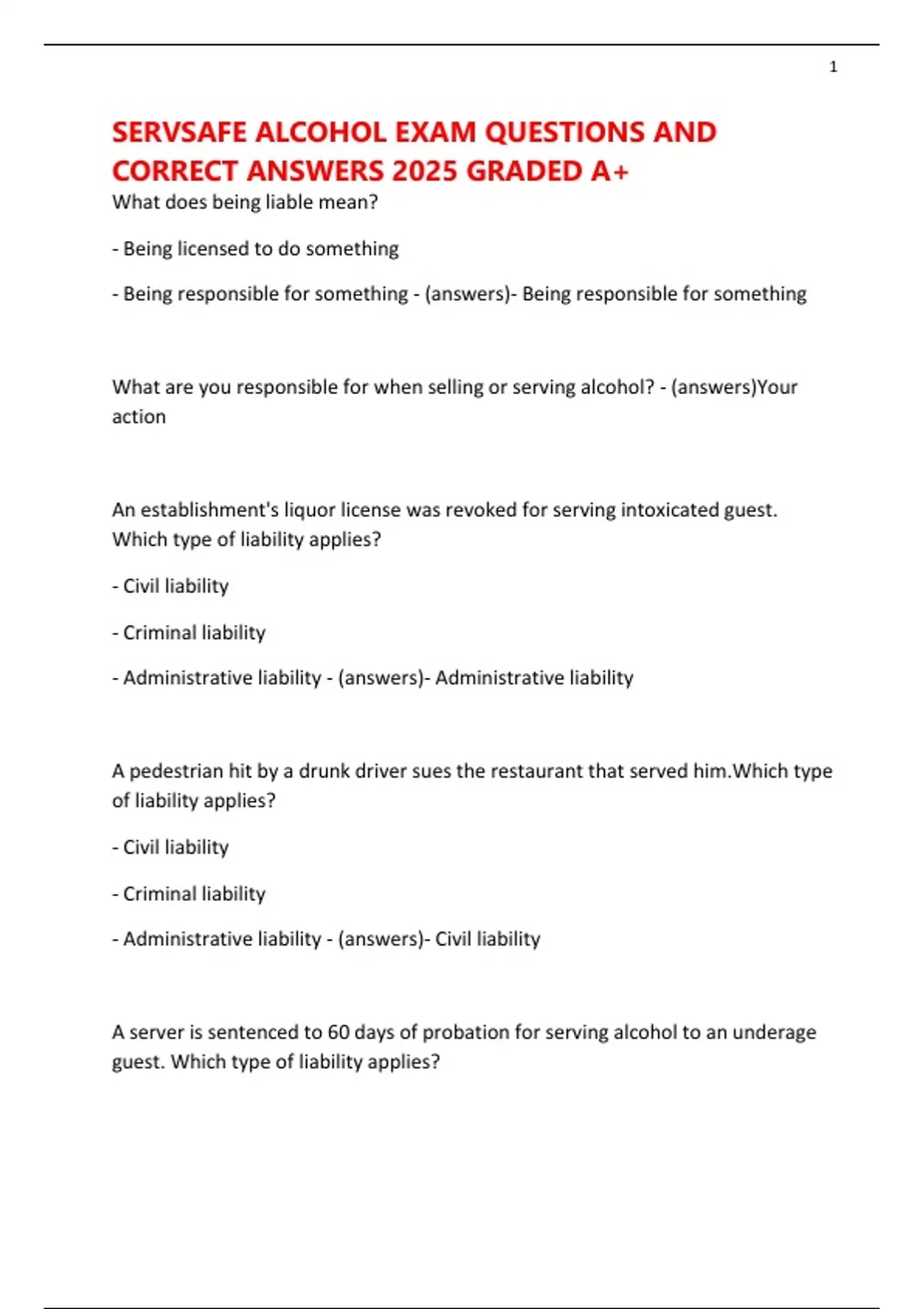 SERVSAFE ALCOHOL EXAM QUESTIONS AND CORRECT ANSWERS 2025 GRADED A+