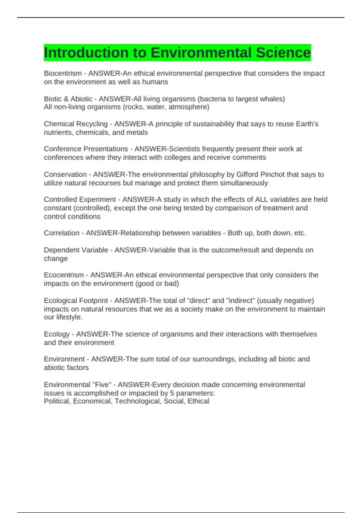 Introduction to Environmental Science