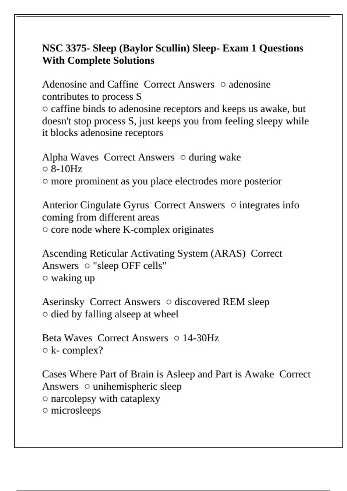 NSC 3375- Sleep (Baylor Scullin) Sleep- Exam 1 Questions With Complete Solutions