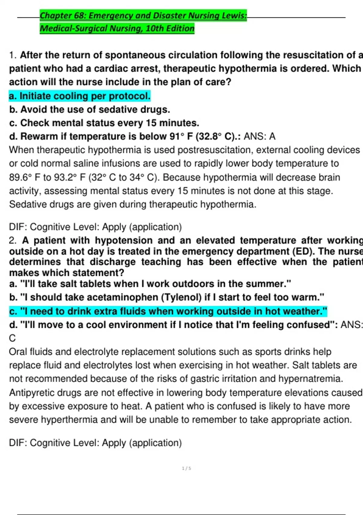 by excessive exposure to heat. A patient who is confused is likely to have more