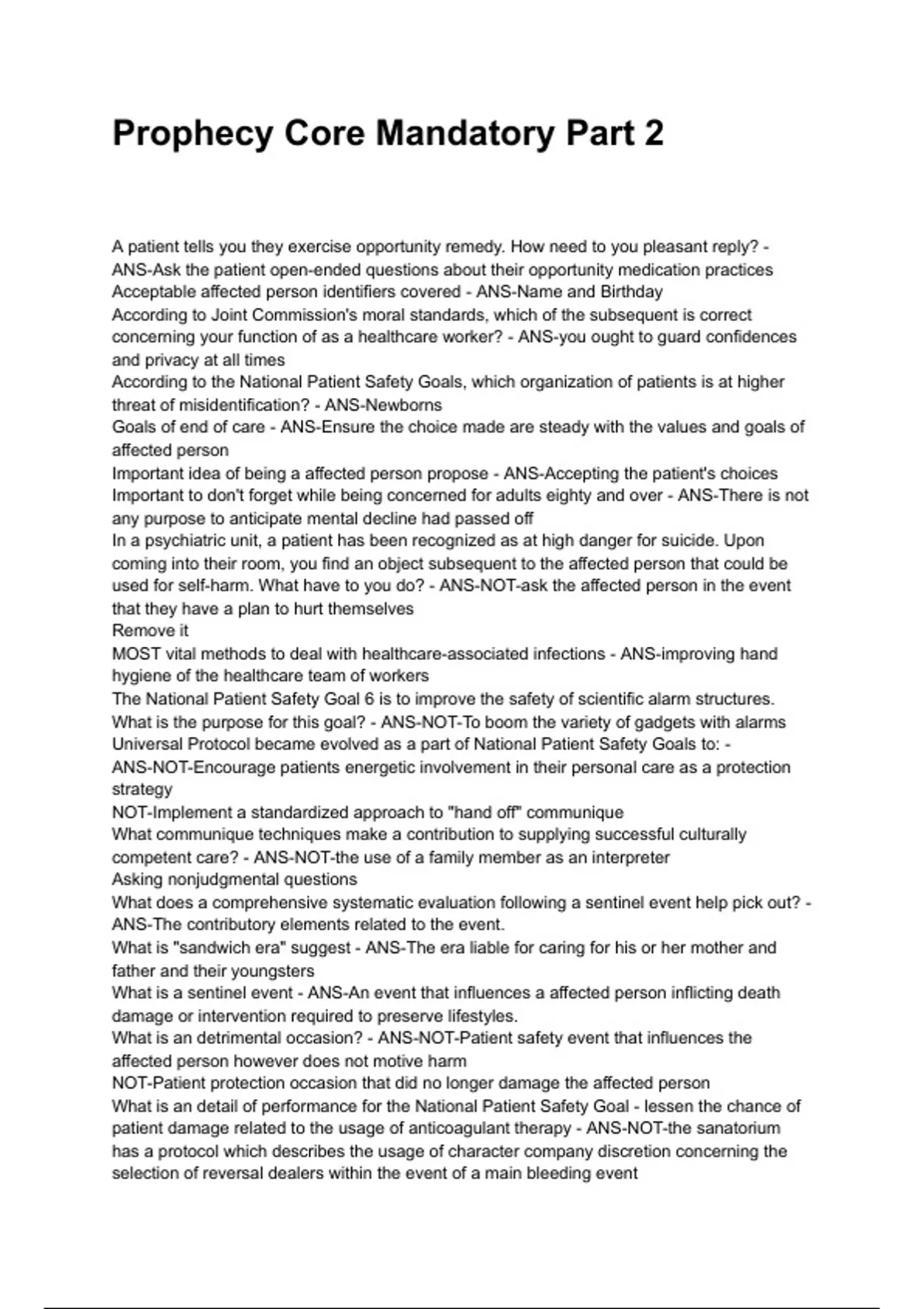 Prophecy Core Mandatory Part 2 (2025/2026 Newest Update) COMPLETE QUESTIONS AND VERIFIED ANSWERS ALREADY GRADED A+!!