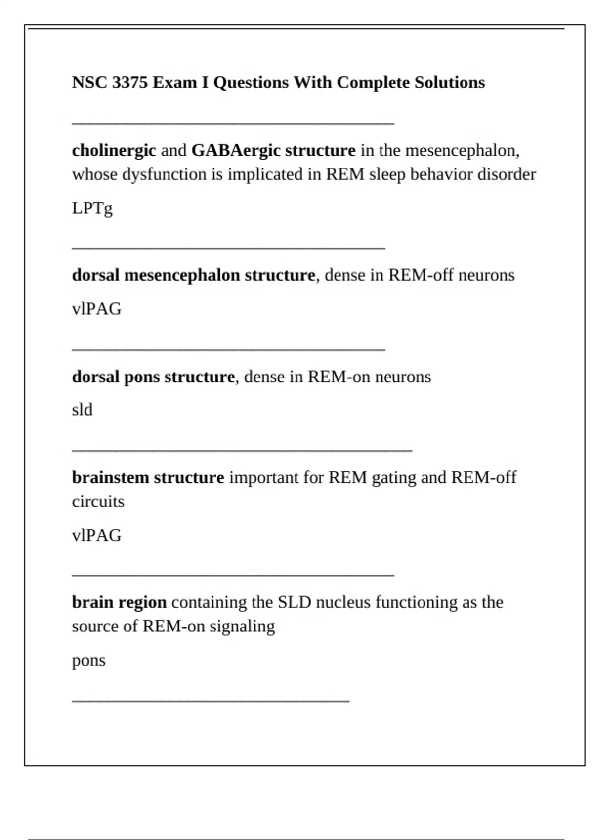 NSC 3375 Exam I Questions With Complete Solutions