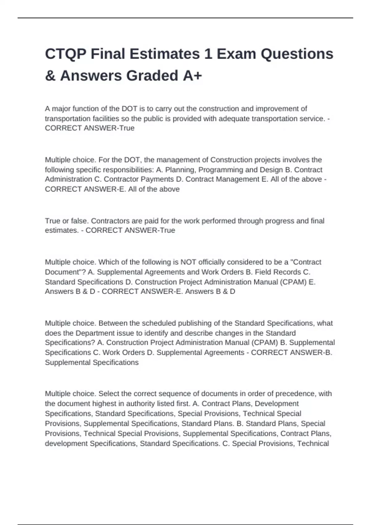 Specifications C. Work Orders D. Supplemental Agreements - CORRECT ANSWER-B.