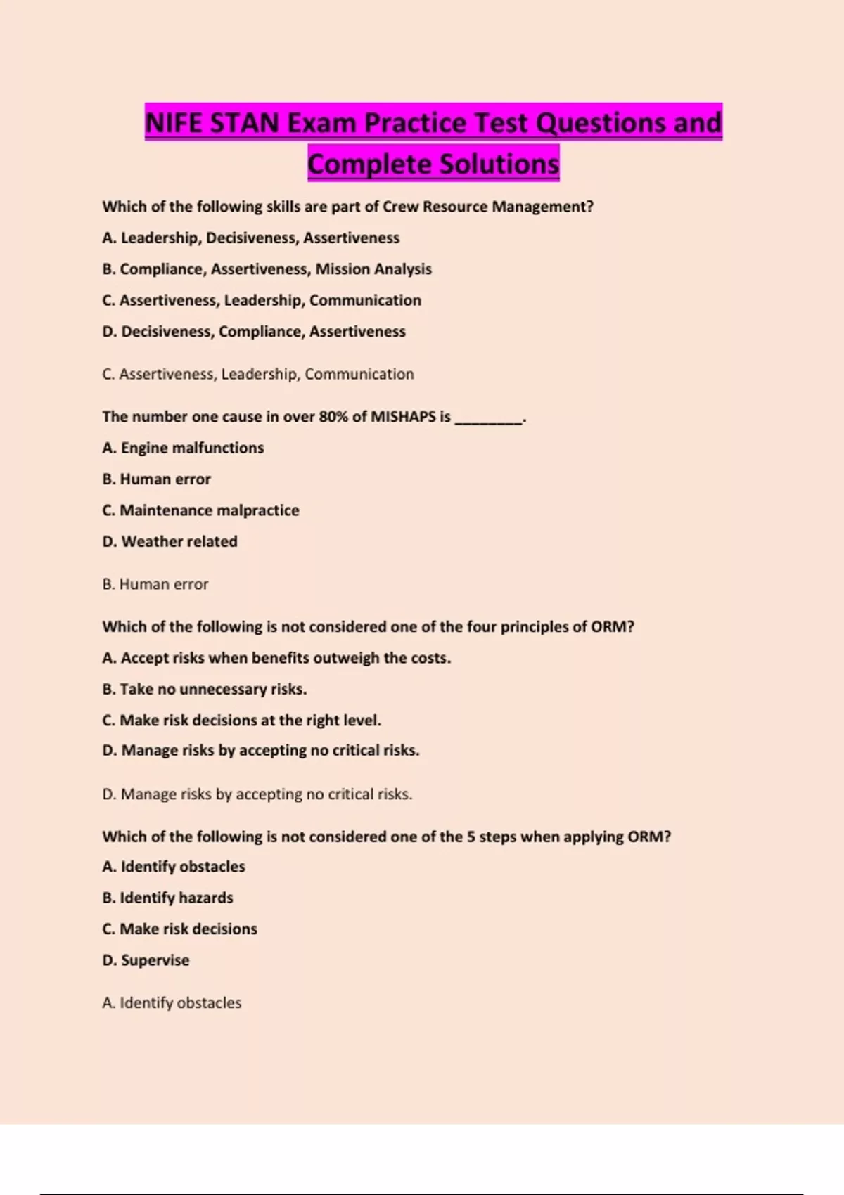 NIFE STAN Exam Practice Test Questions and Complete Solutions