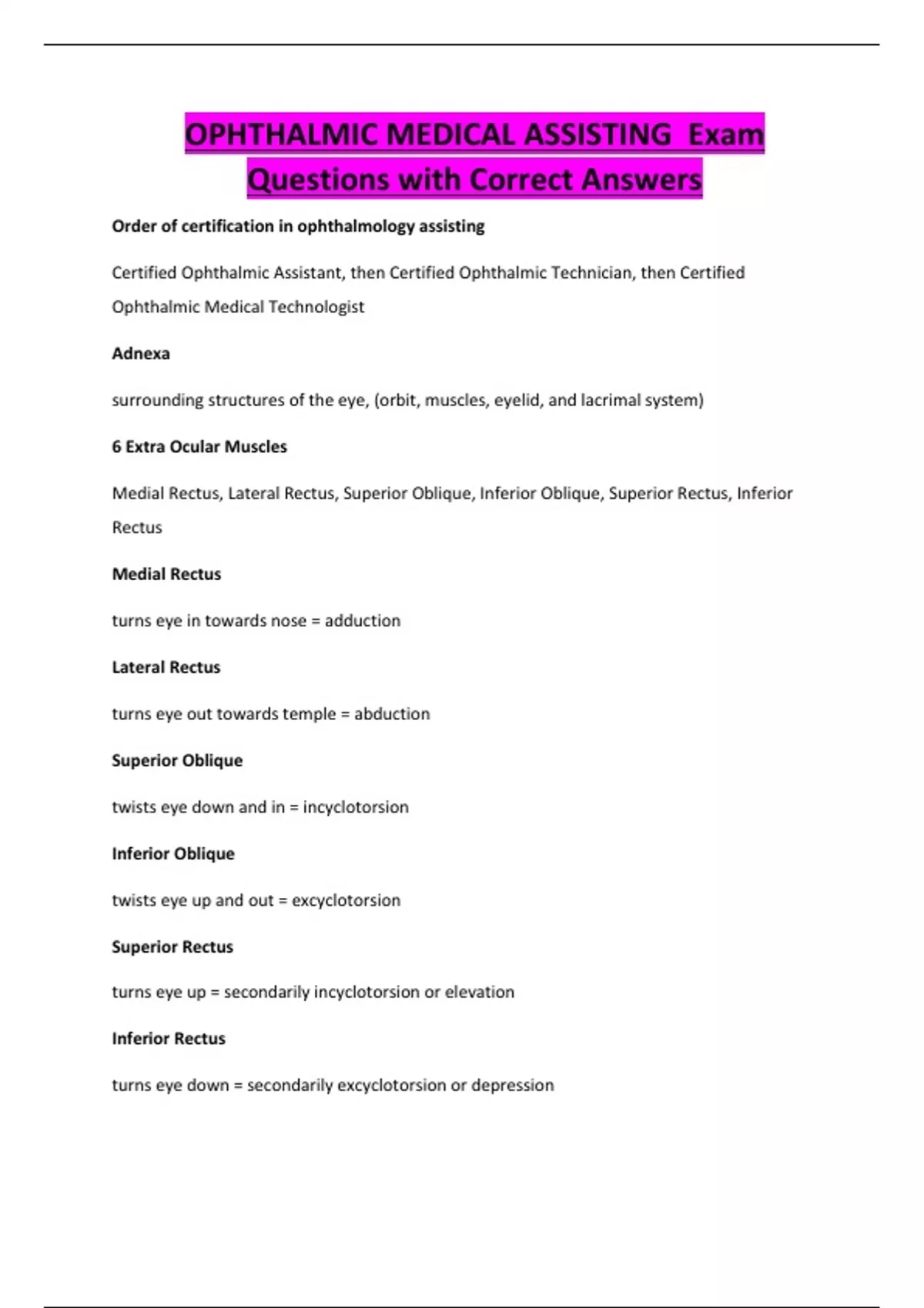 OPHTHALMIC MEDICAL ASSISTING Exam Questions with Correct Answers