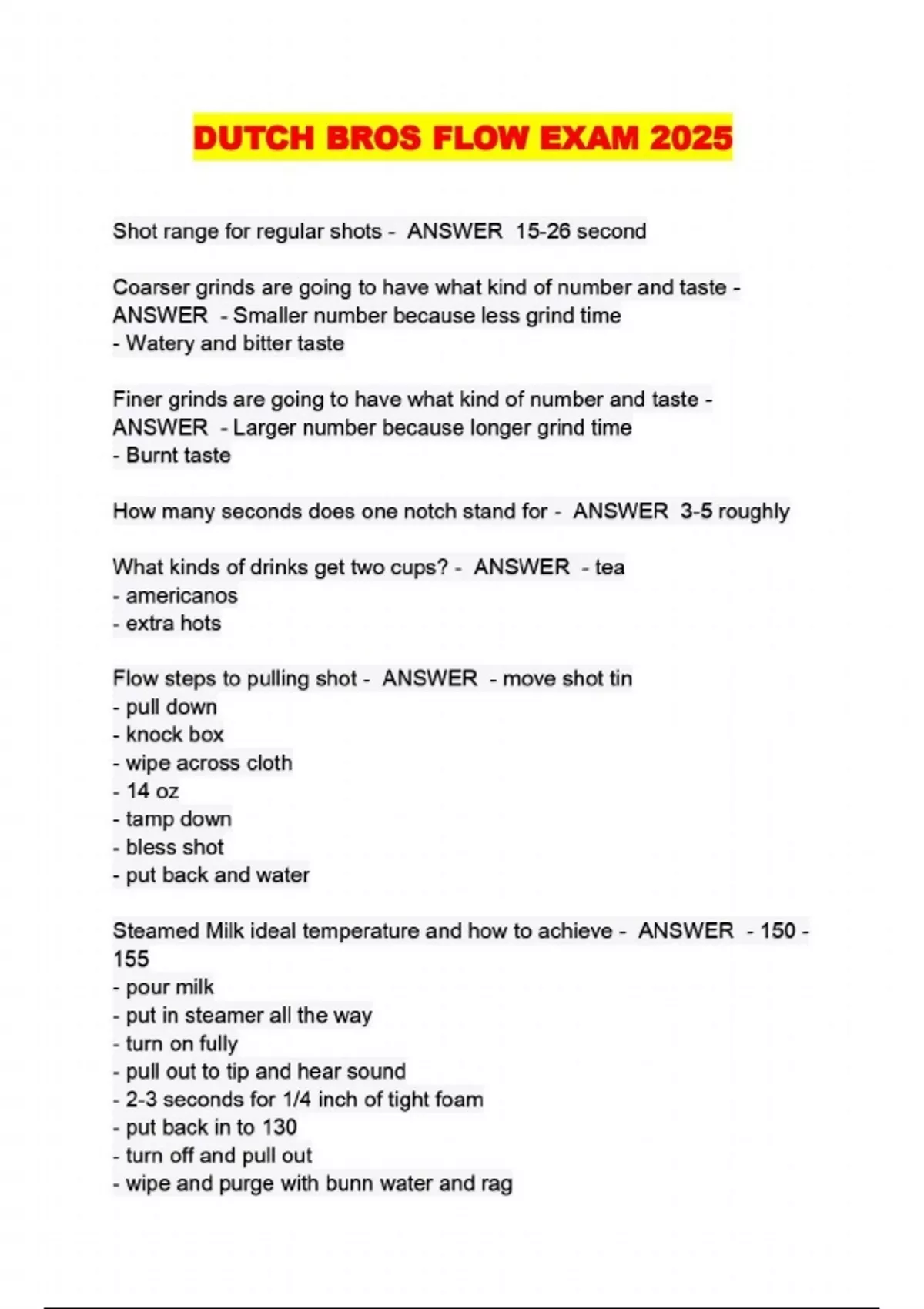 ALL DUTCH BROS PACKAGED EXAMS: QUESTIONS WITH 100% VERIFIED ANSWERS