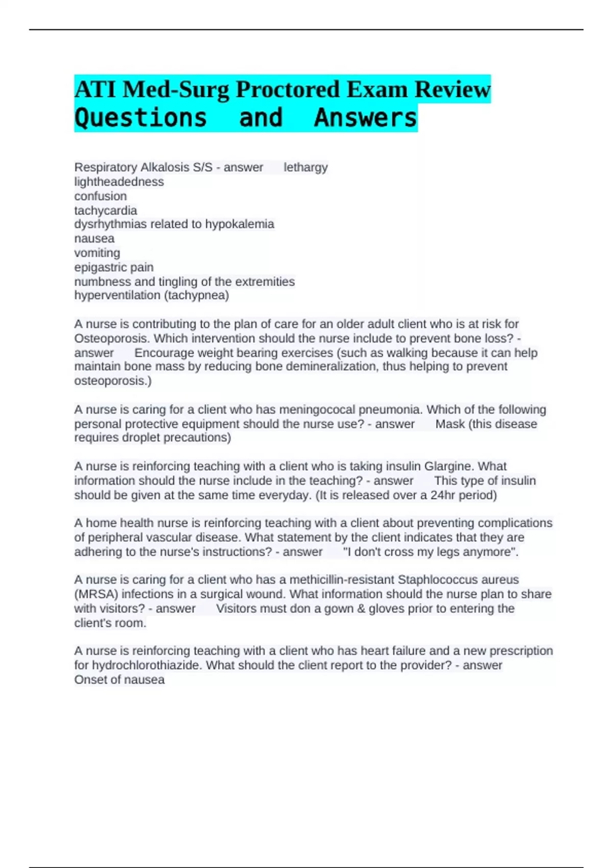 Respiratory Alkalosis S/S - answer lethargy