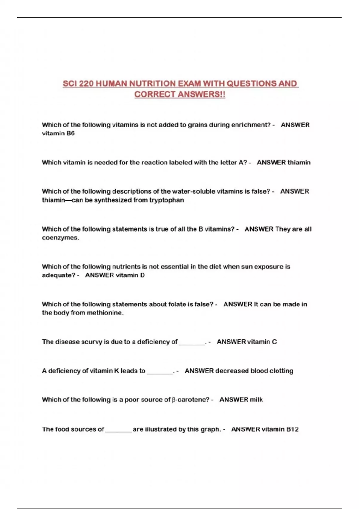 SCI 220 HUMAN NUTRITION EXAM WITH QUESTIONS AND CORRECT ANSWERS!!...