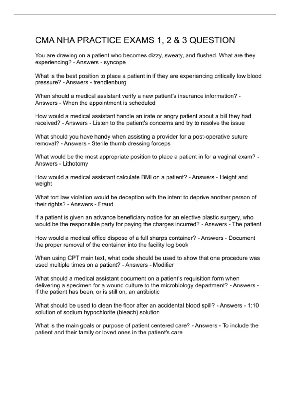 CMA NHA PRACTICE EXAMS 1, 2 & 3 QUESTION