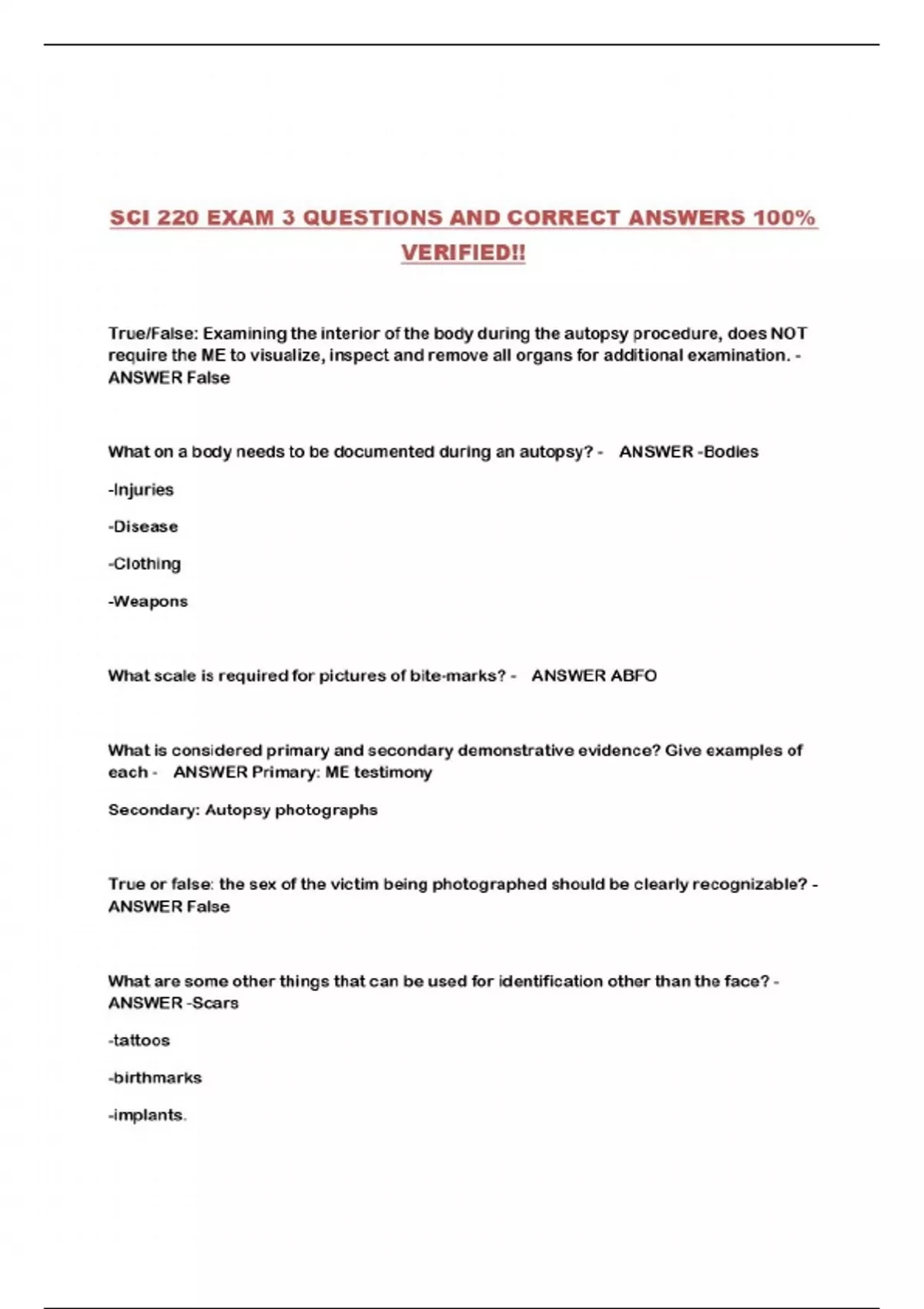 ALL SCI 220 PACKAGED EXAMS!!