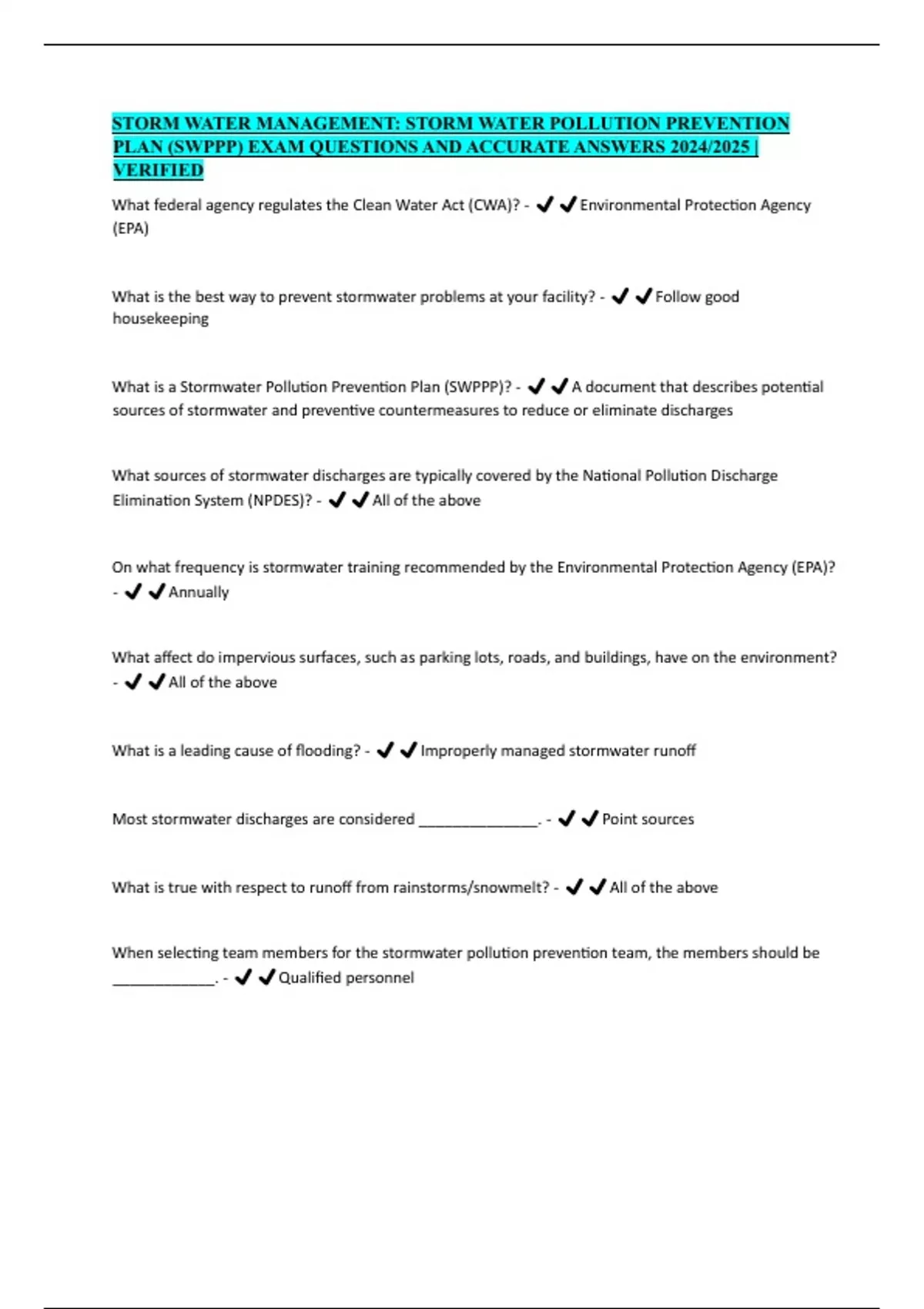 PLAN (SWPPP) EXAM QUESTIONS AND ACCURATE ANSWERS 2024/2025 |