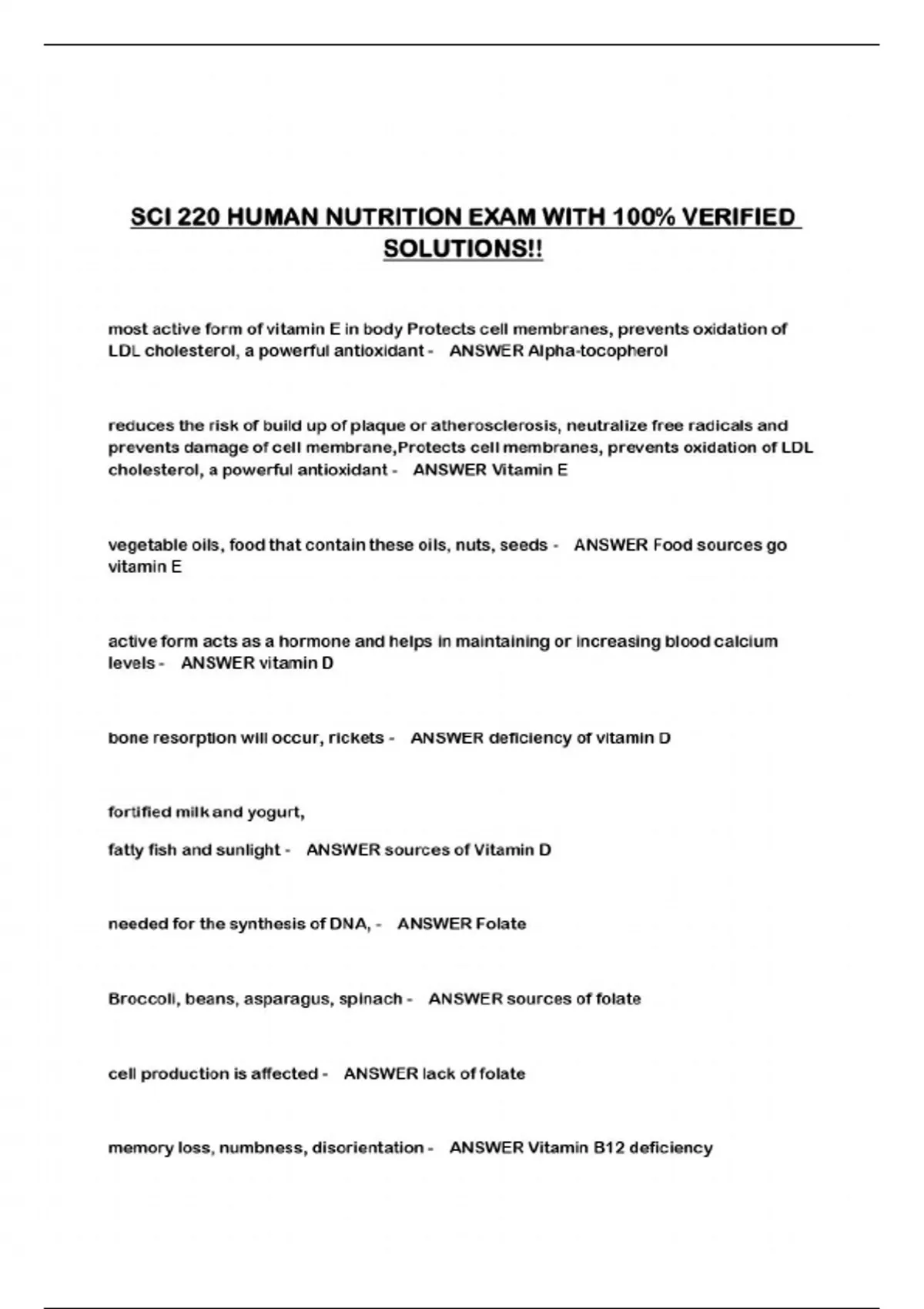 SCI 220 HUMAN NUTRITION EXAM WITH 100% VERIFIED SOLUTIONS!!...