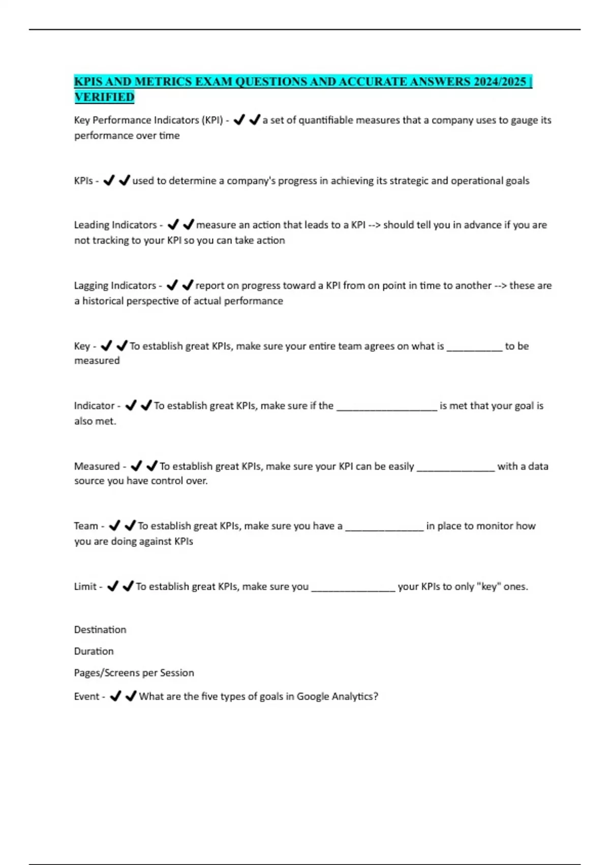 KPIS AND METRICS EXAM QUESTIONS AND ACCURATE ANSWERS 2024/2025 |