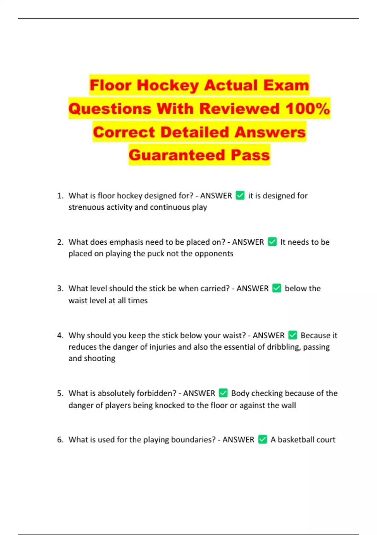 1. What is floor hockey designed for? - ANSWER it is designed for