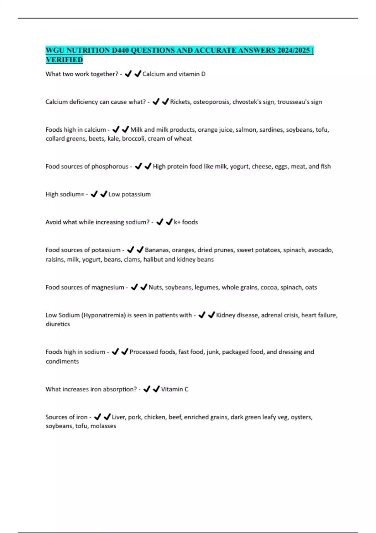 WGU NUTRITION D440 QUESTIONS AND ACCURATE ANSWERS 2024/2025 |