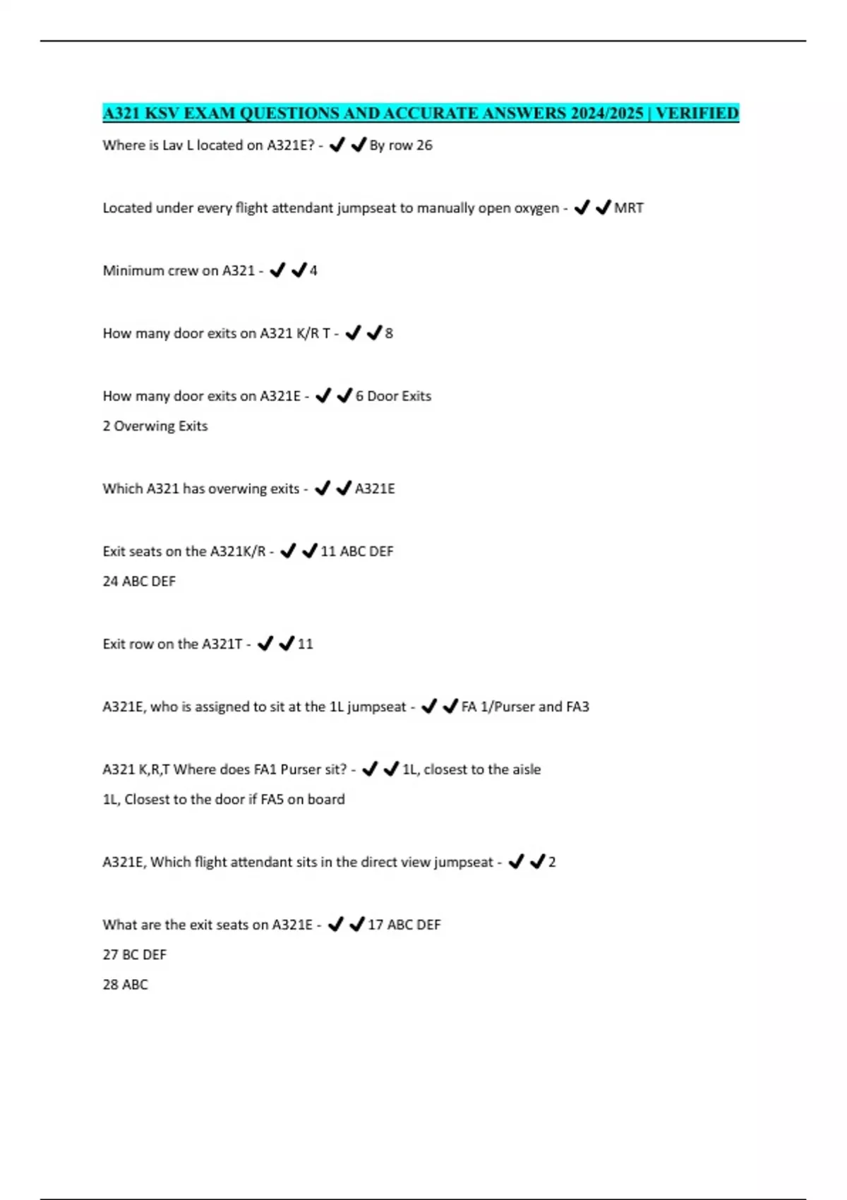 A321 KSV EXAM QUESTIONS AND ACCURATE ANSWERS 2024/2025 | VERIFIED