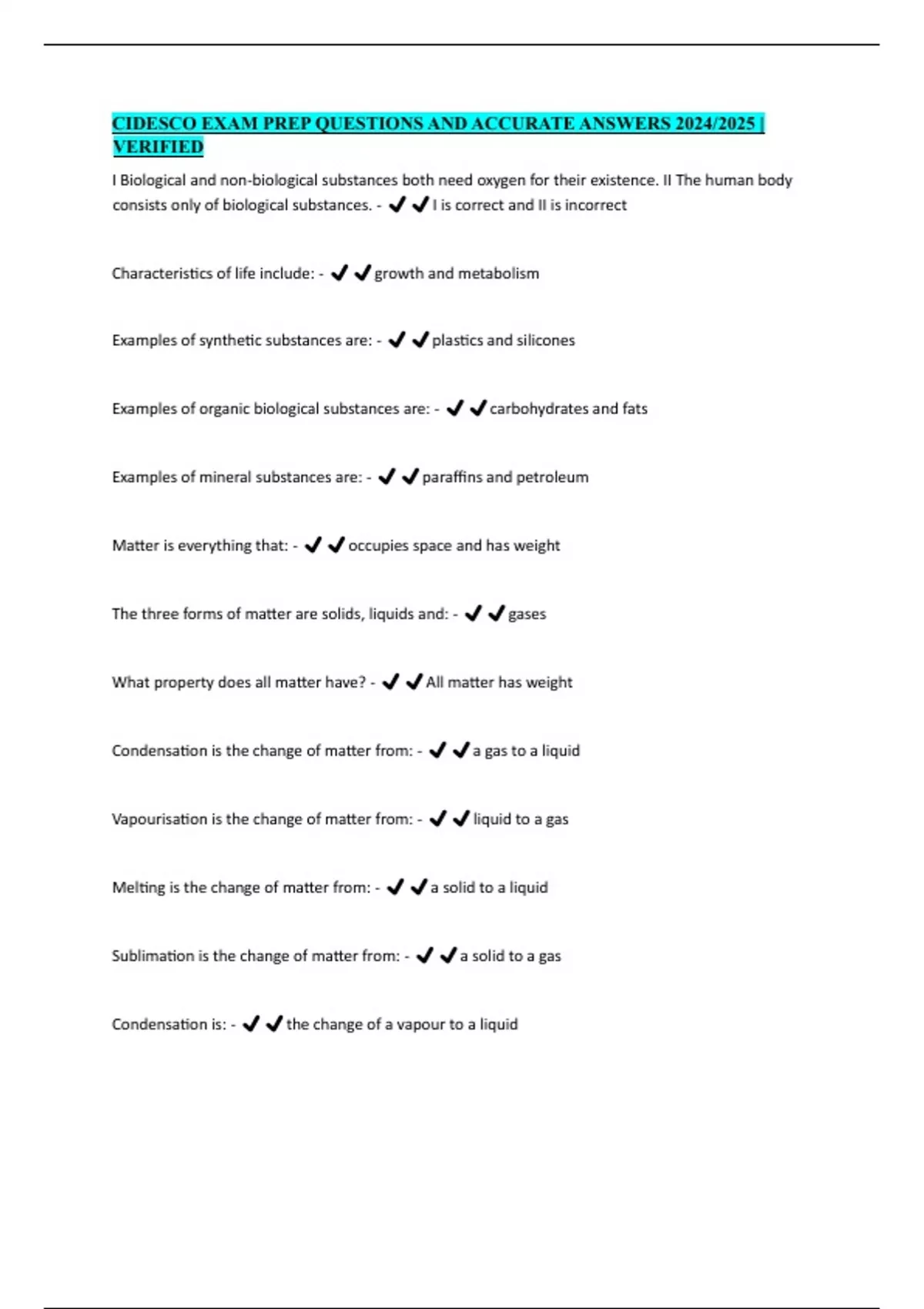 CIDESCO EXAM PREP QUESTIONS AND ACCURATE ANSWERS 2024/2025 |