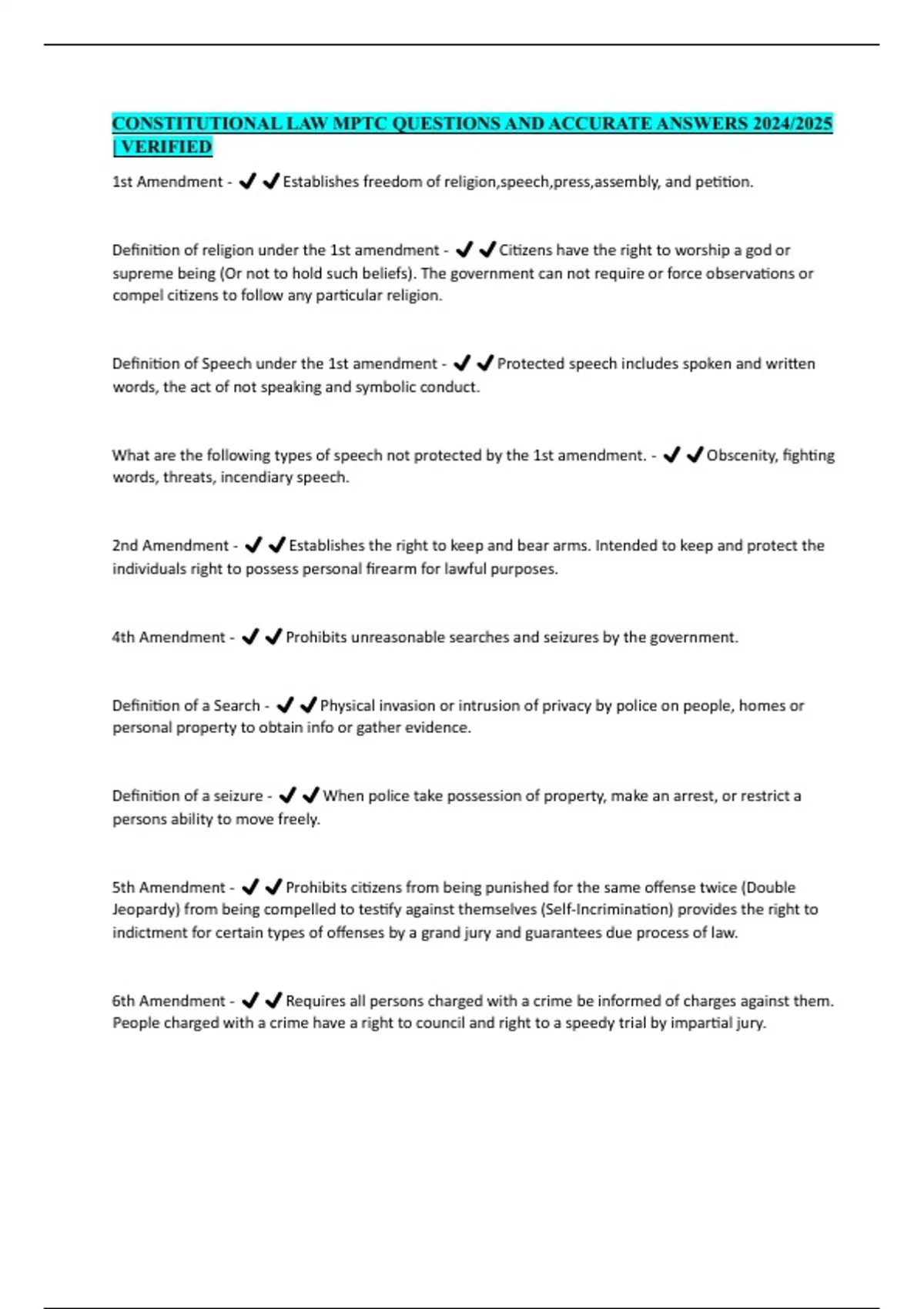 CONSTITUTIONAL LAW MPTC QUESTIONS AND ACCURATE ANSWERS 2024/2025