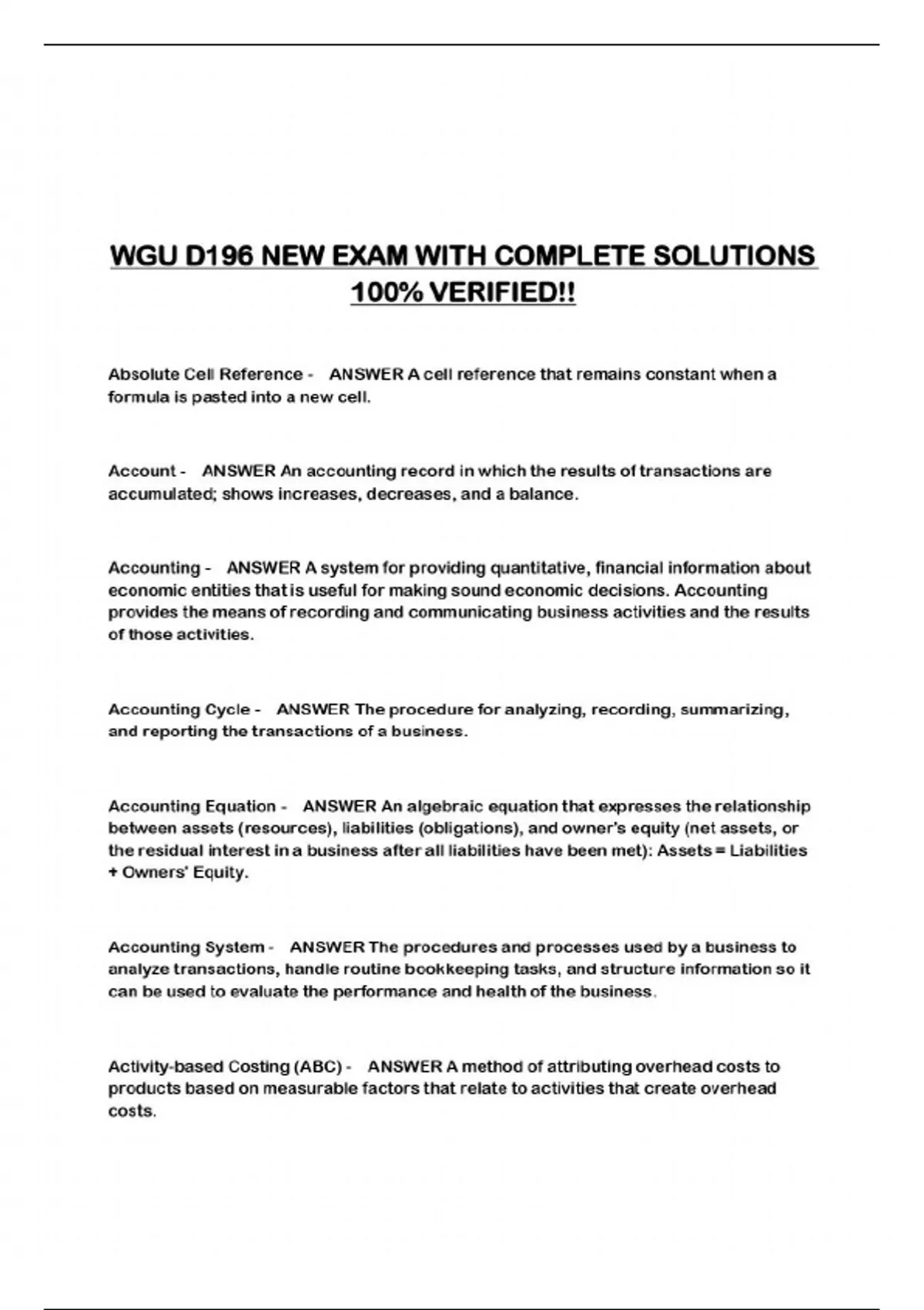 WGU D196 NEW EXAM WITH COMPLETE SOLUTIONS 100% VERIFIED!!...