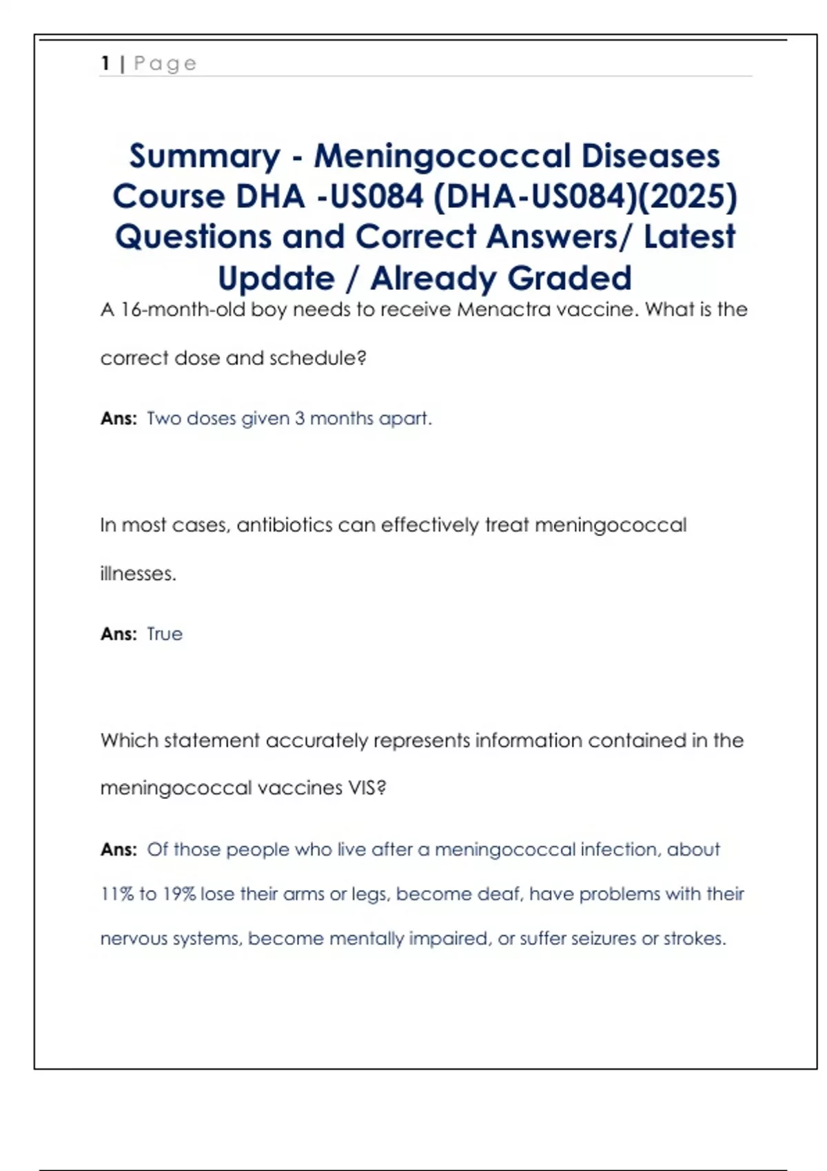 Questions and Correct Answers/ Latest
