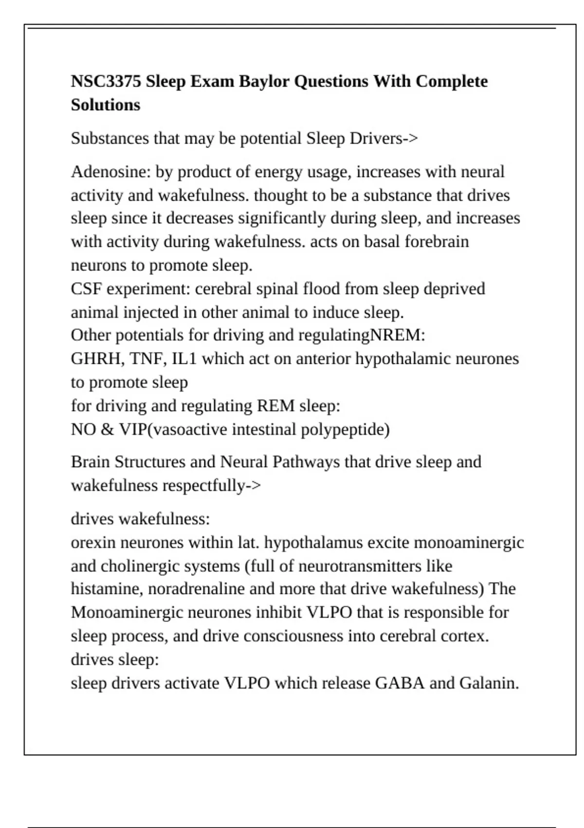 NSC3375 Sleep Exam Baylor Questions With Complete Solutions