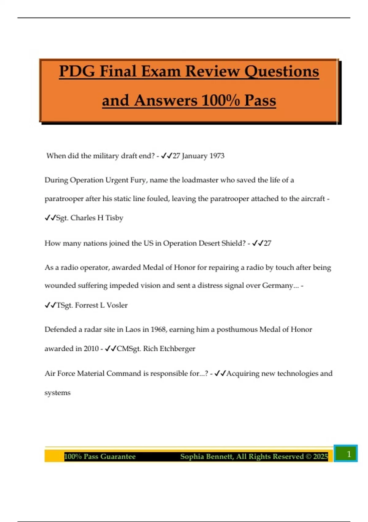 100% Pass Guarantee Sophia Bennett, All Rights Reserved © 2025 1