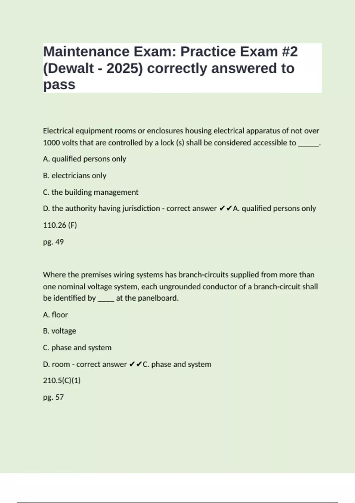 Maintenance Exam: Practice Exam #2 (Dewalt - 2025) correctly answered to pass