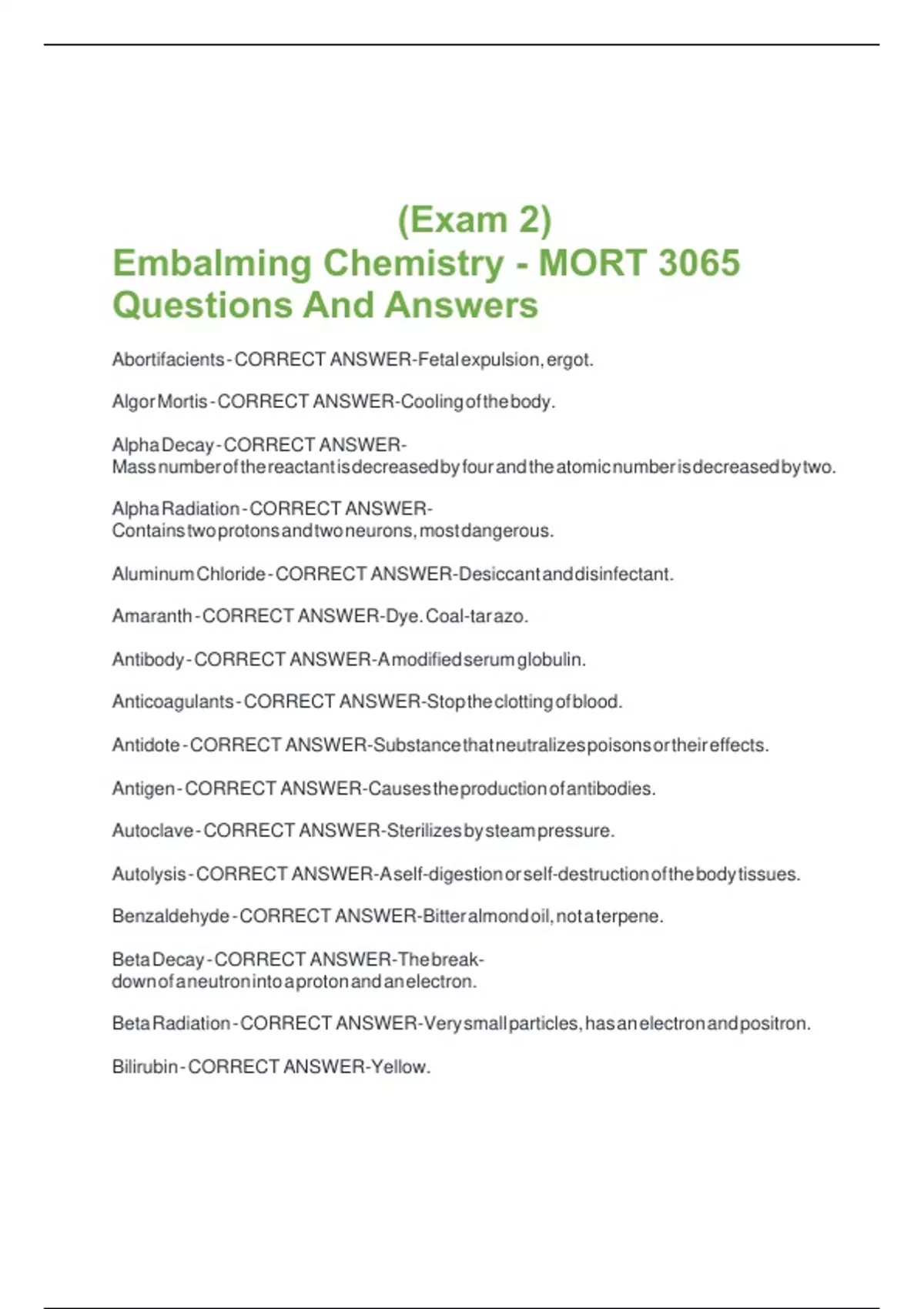 Embalming Chemistry - MORT 3065 Questions And Answers Embalming Chemistry - MORT 3065 Questions And Answers Embalming Chemistry - MORT 3065 Questions And Answers