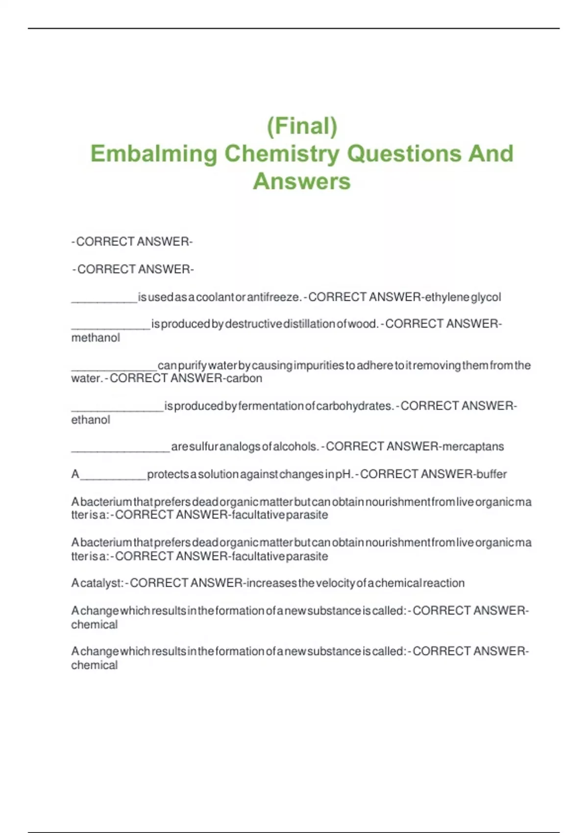 Embalming Chemistry Questions And Answers Embalming Chemistry Questions And Answers Embalming Chemistry Questions And Answers