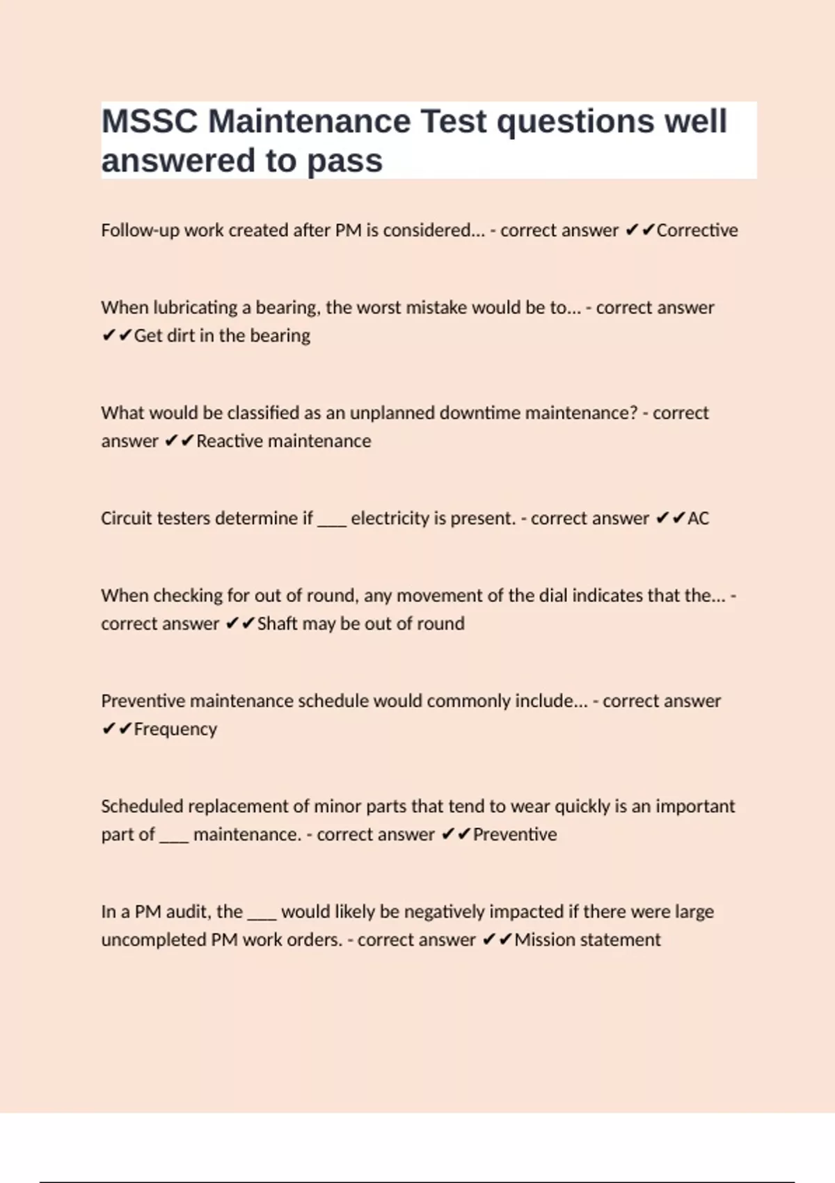 MSSC Maintenance Test questions well answered to pass