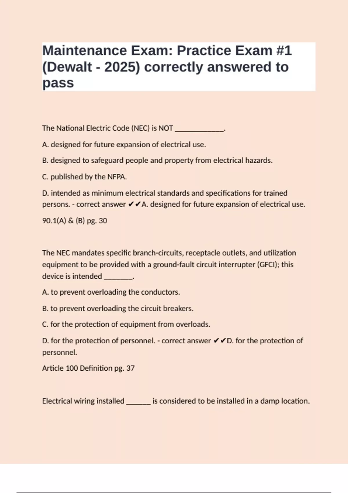 Maintenance Exam: Practice Exam #1 (Dewalt - 2025) correctly answered to pass