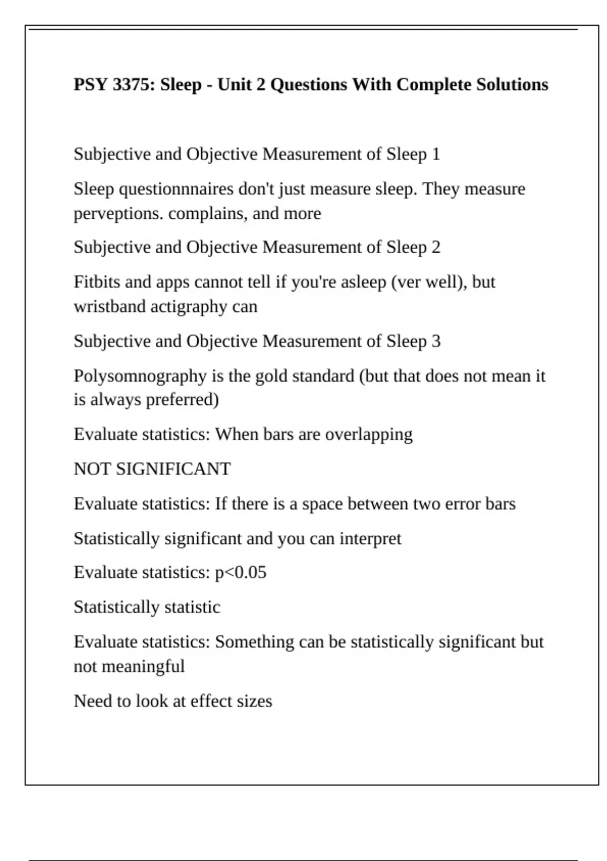 PSY 3375: Sleep - Unit 2 Questions With Complete Solutions