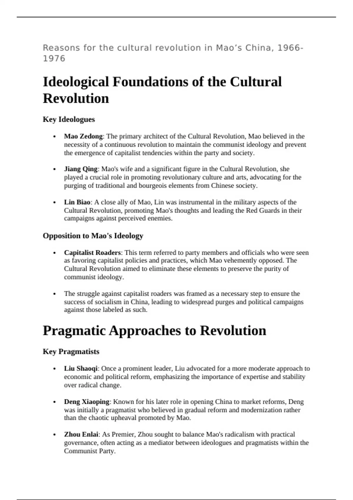 Mao Zedong: The primary architect of the Cultural Revolution, Mao believed in the