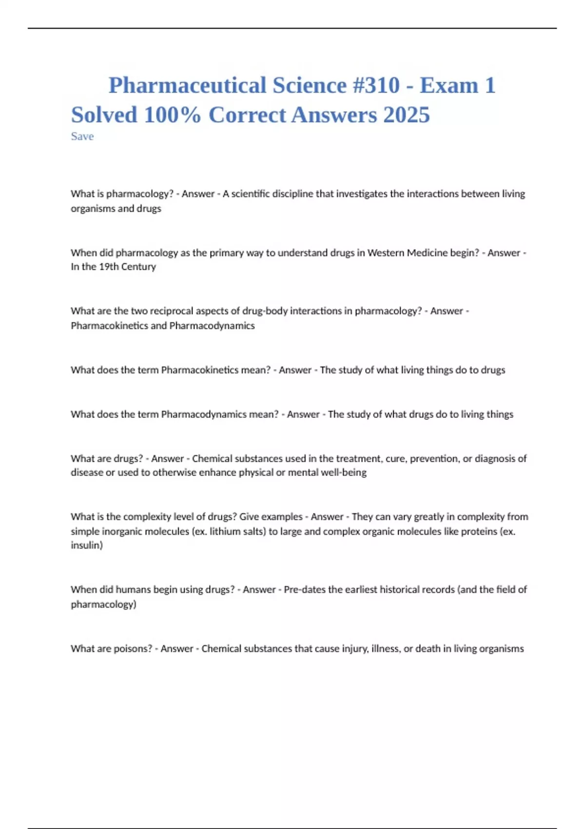 Pharmaceutical Science #310 - Exam 1 Solved 100% Correct Answers 2025 Save