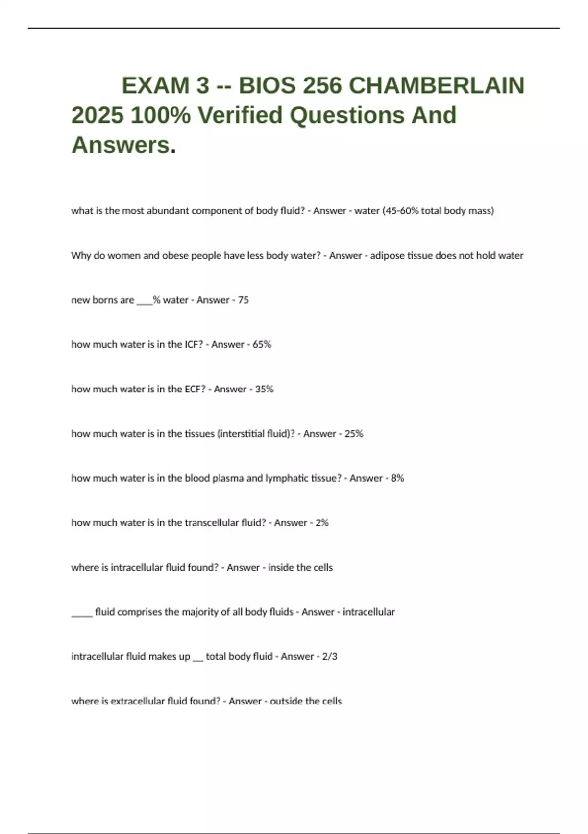EXAM 3 -- BIOS 256 CHAMBERLAIN 2025 100% Verified Questions And Answers