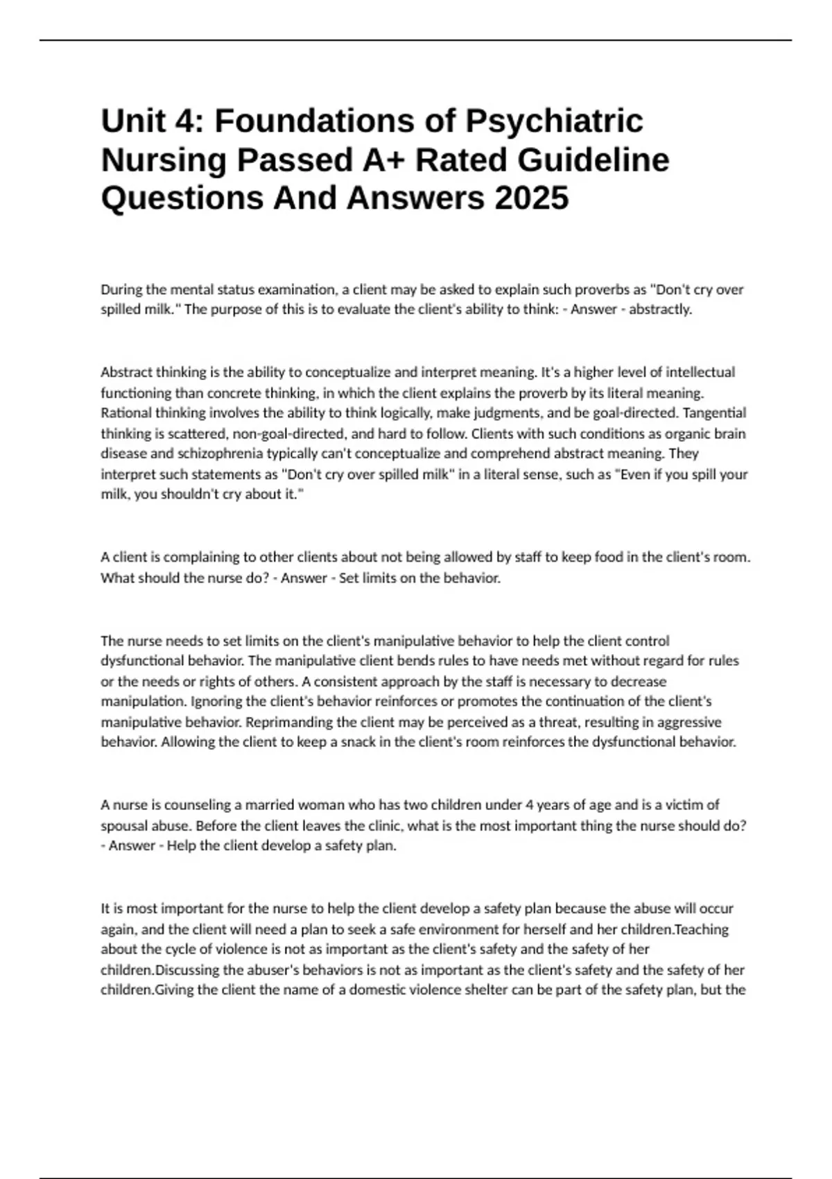 spilled milk." The purpose of this is to evaluate the client's ability to think: - Answer - abstractly.