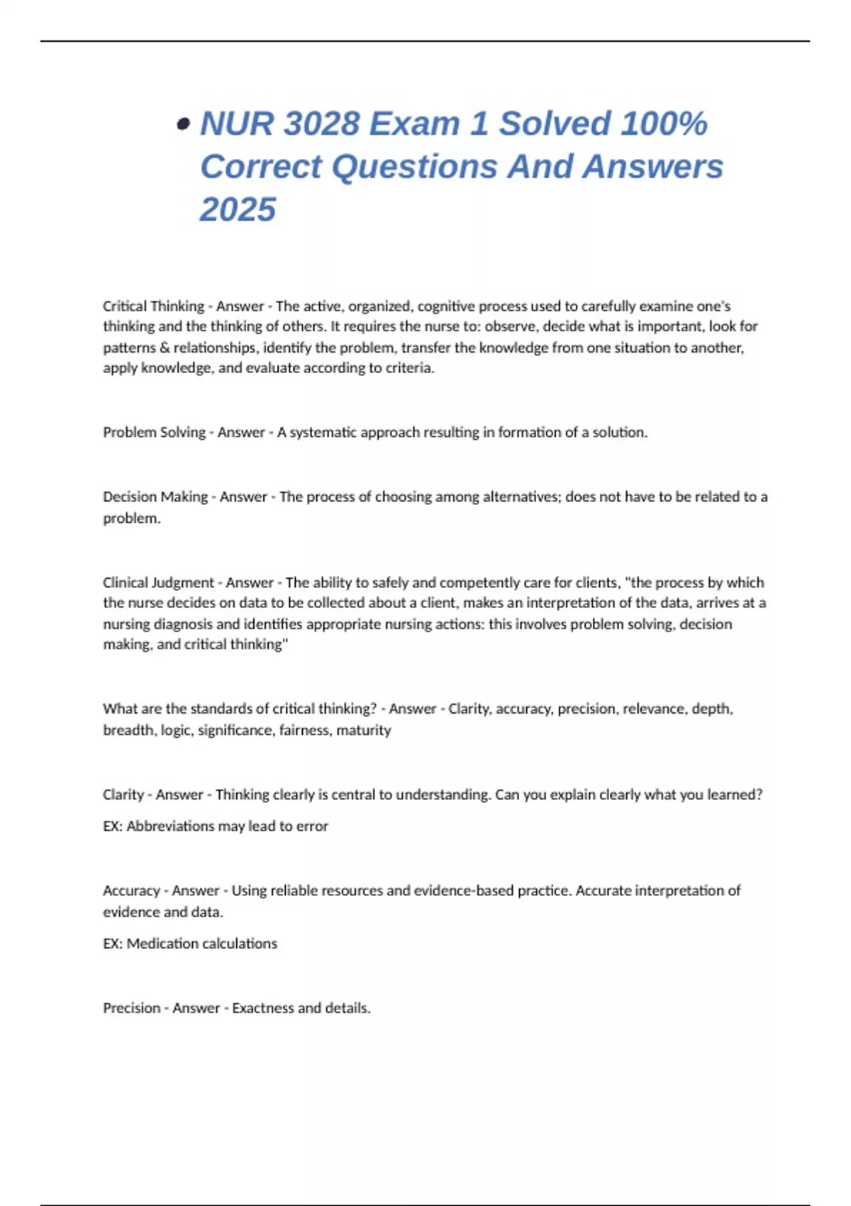 What are the standards of critical thinking? - Answer - Clarity, accuracy, precision, relevance, depth,