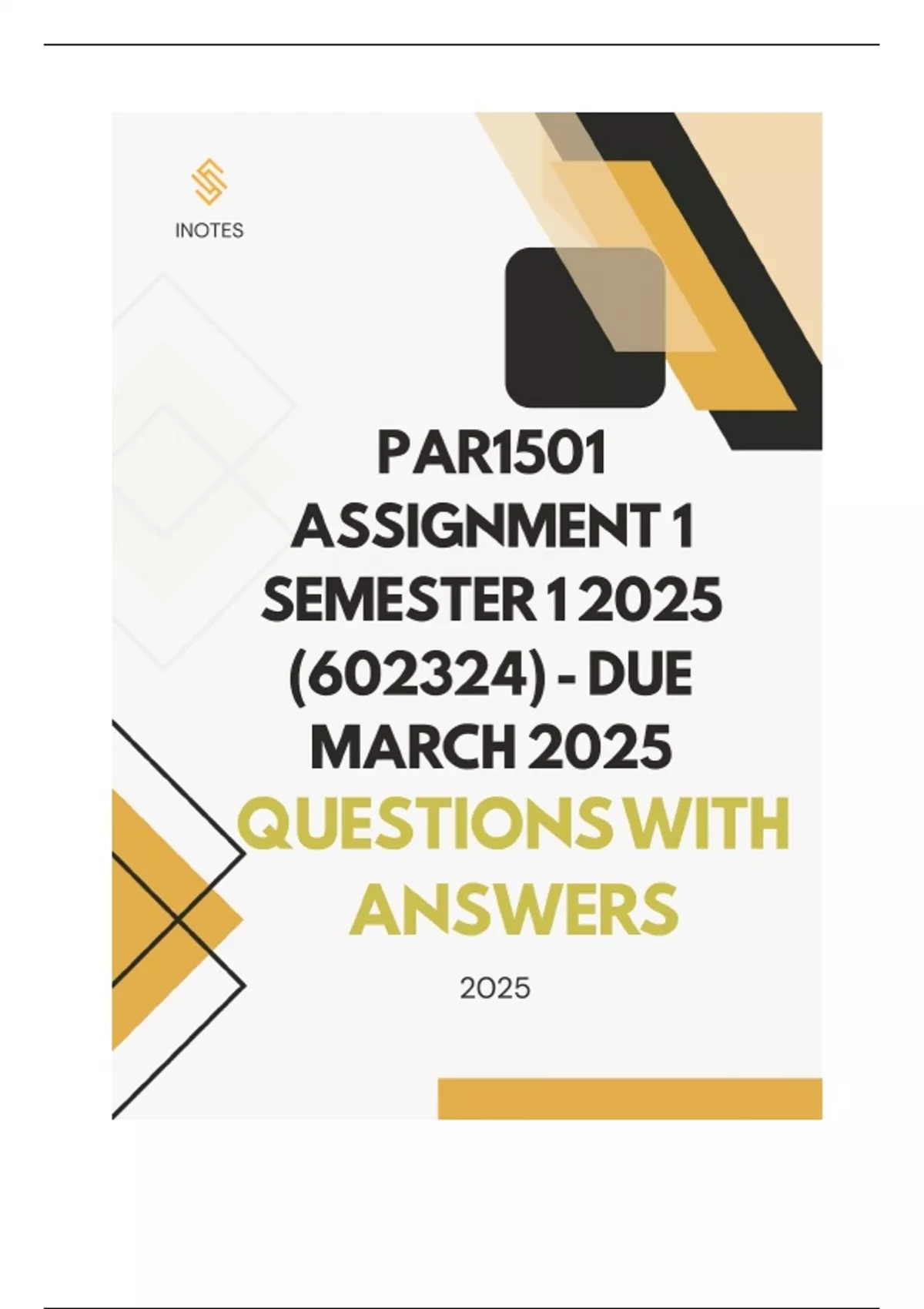 PAR1501 Assignment 1 Semester 1 2025 (602324) - DUE March 2025 QUESTIONS WITH COMPLETE ANSWERS
