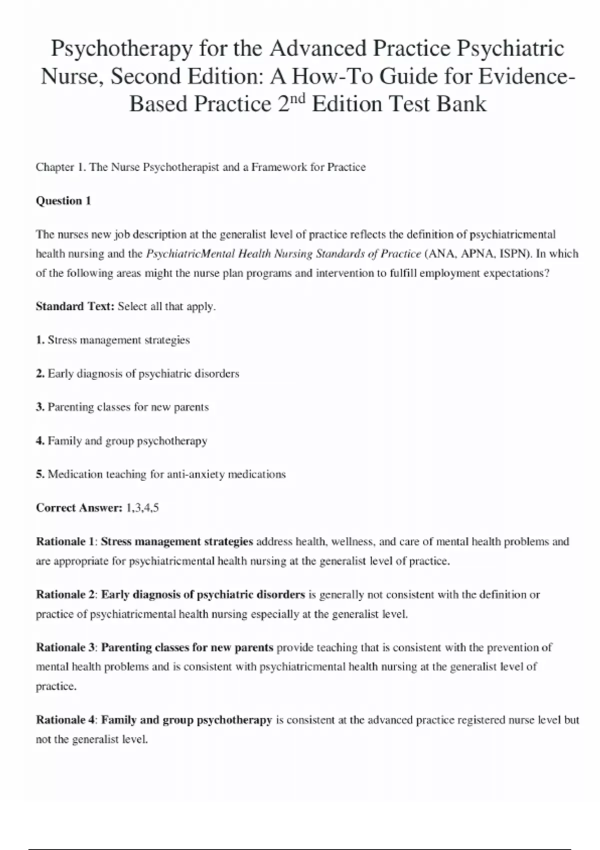 FULL TEST BANK Psychotherapy for the Advanced Practice Psychiatric Nurse 2nd Edition by Kathleen Wheeler