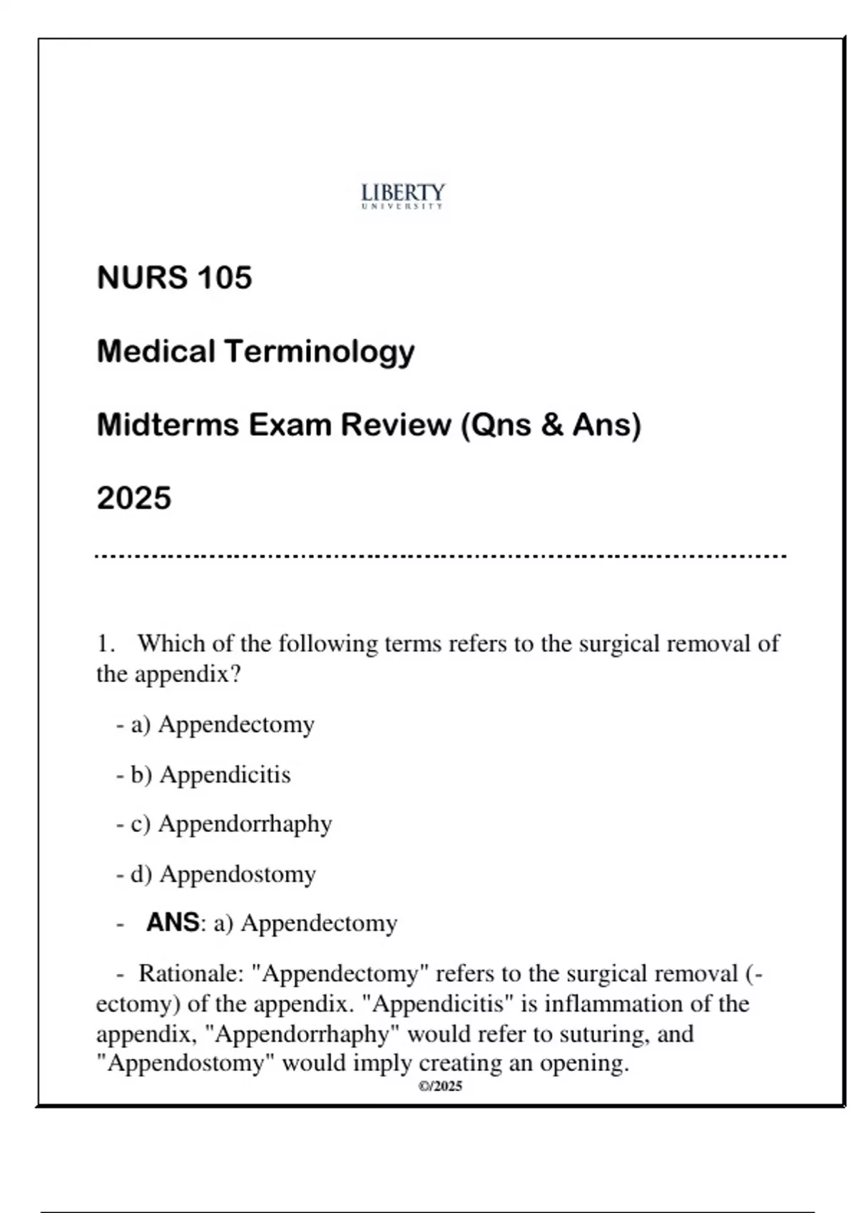 - Rationale: "Appendectomy" refers to the surgical removal (-