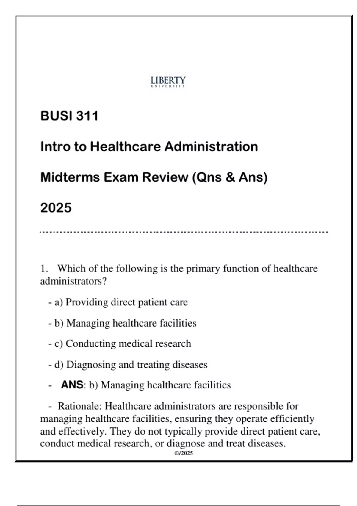 - ANS: b) Managing healthcare facilities