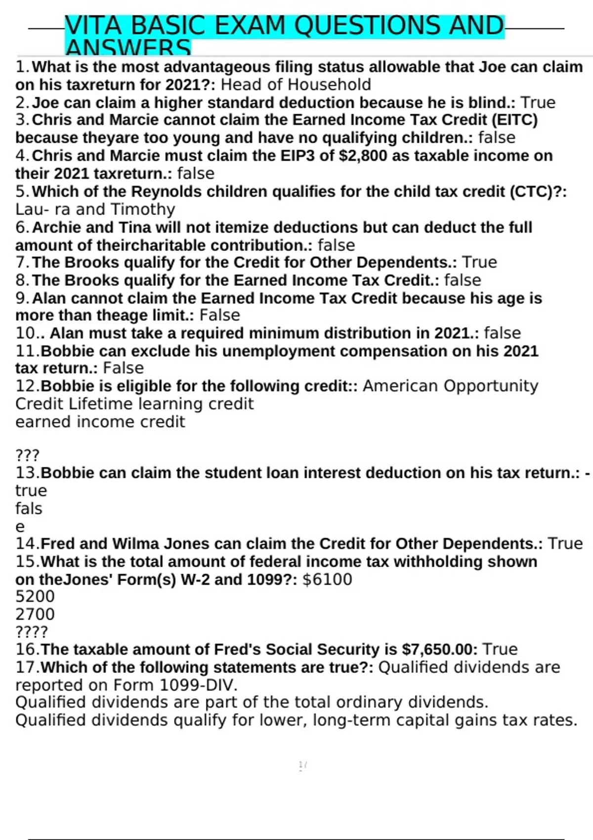 2.Joe can claim a higher standard deduction because he is blind.: True