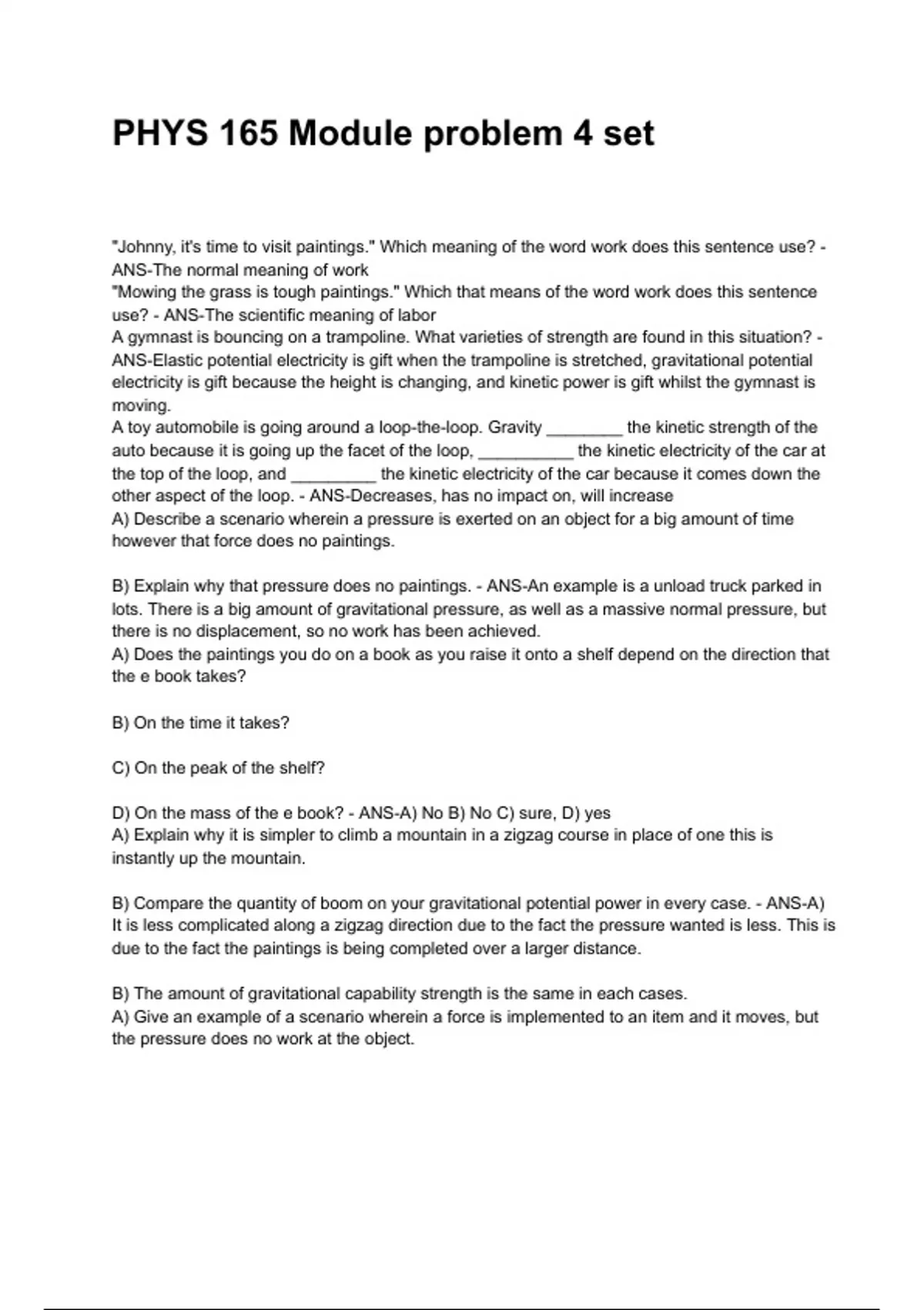 B) Explain why that pressure does no paintings. - ANS-An example is a unload truck parked in