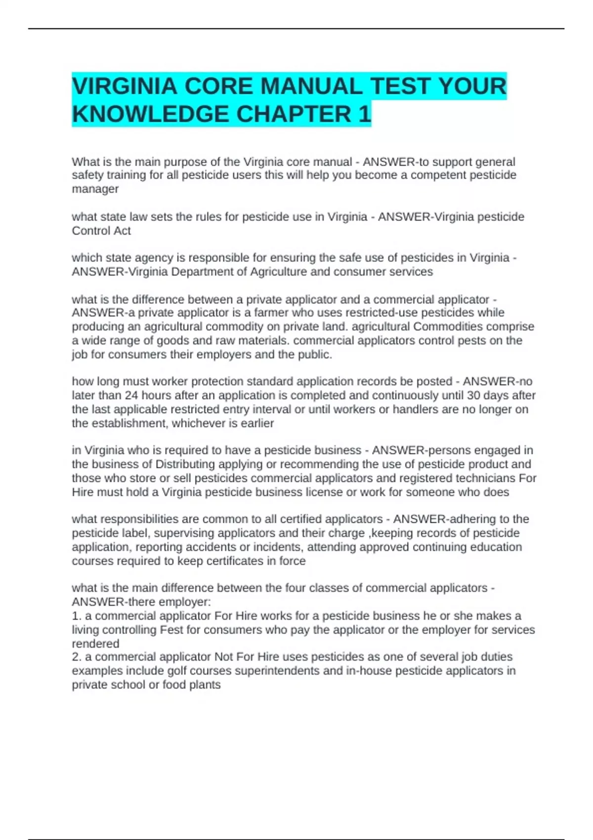 What is the main purpose of the Virginia core manual - ANSWER-to support general