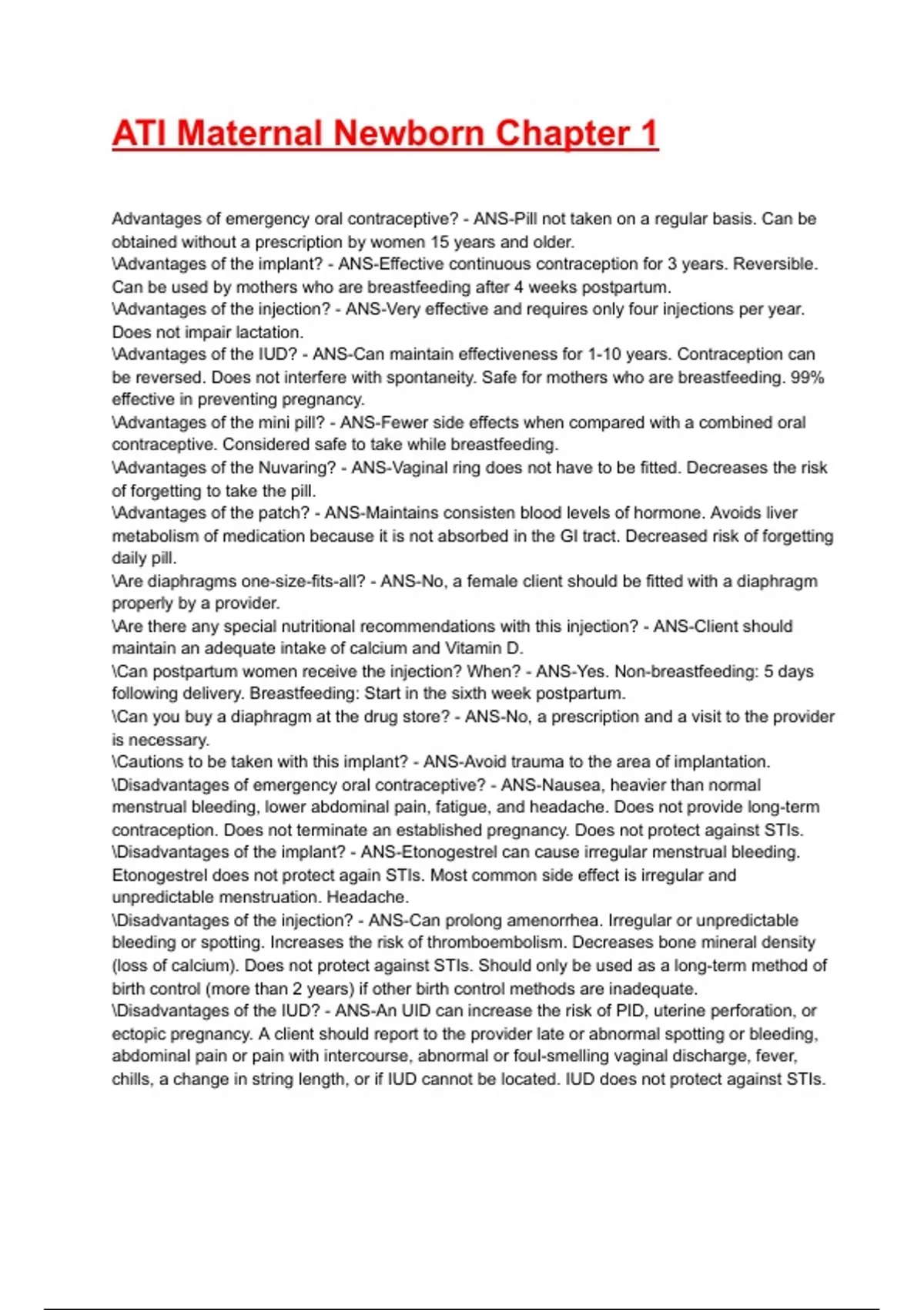 ATI Maternal Newborn Chapter 1