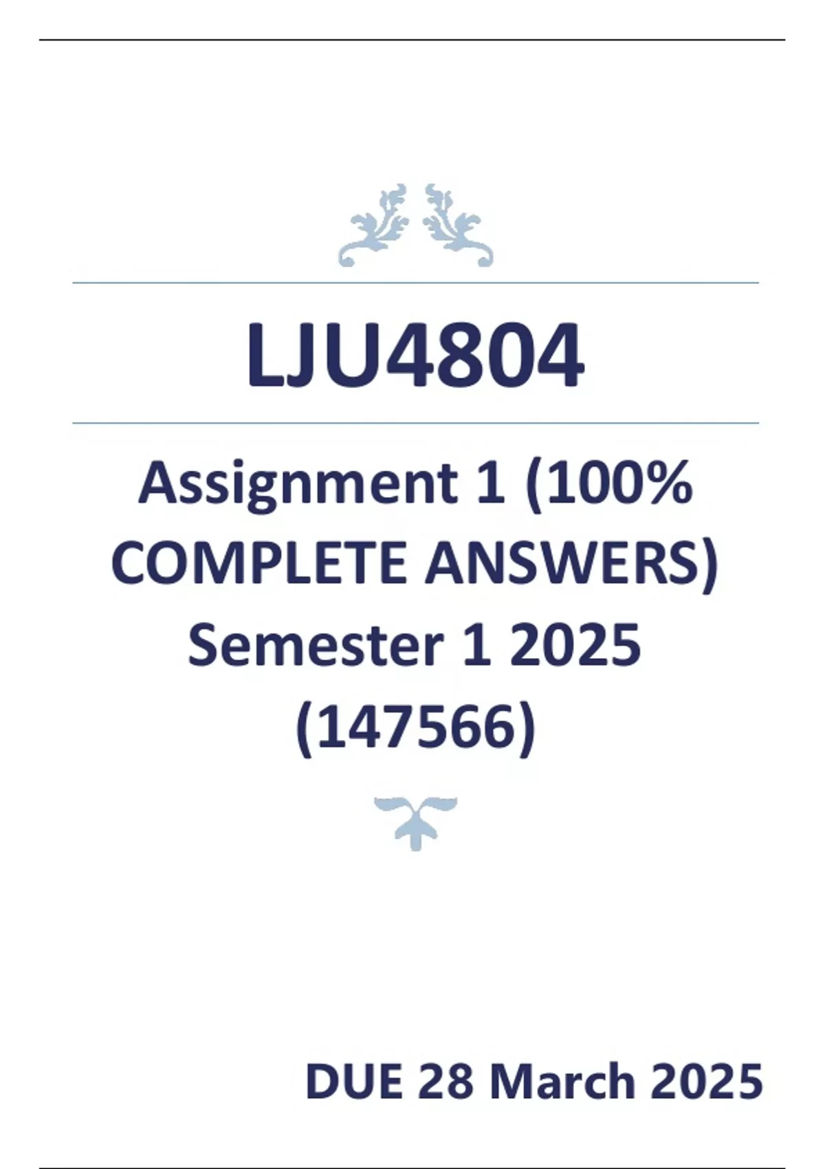 LJU4804 Assignment 1 (100% COMPLETE ANSWERS) Semester 1 2025 (147566) - DUE 28 March 2025