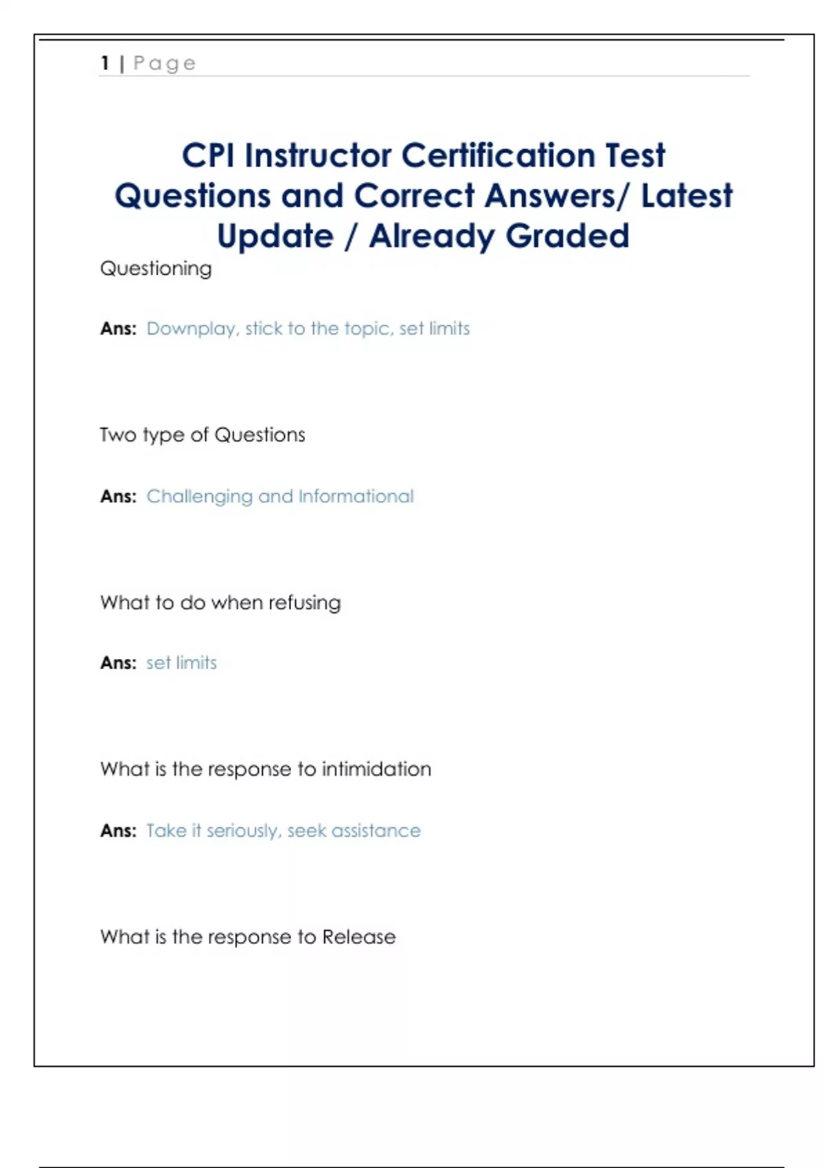 CPI Instructor Certification Test Questions and Correct Answers/ Latest Update / Already Graded