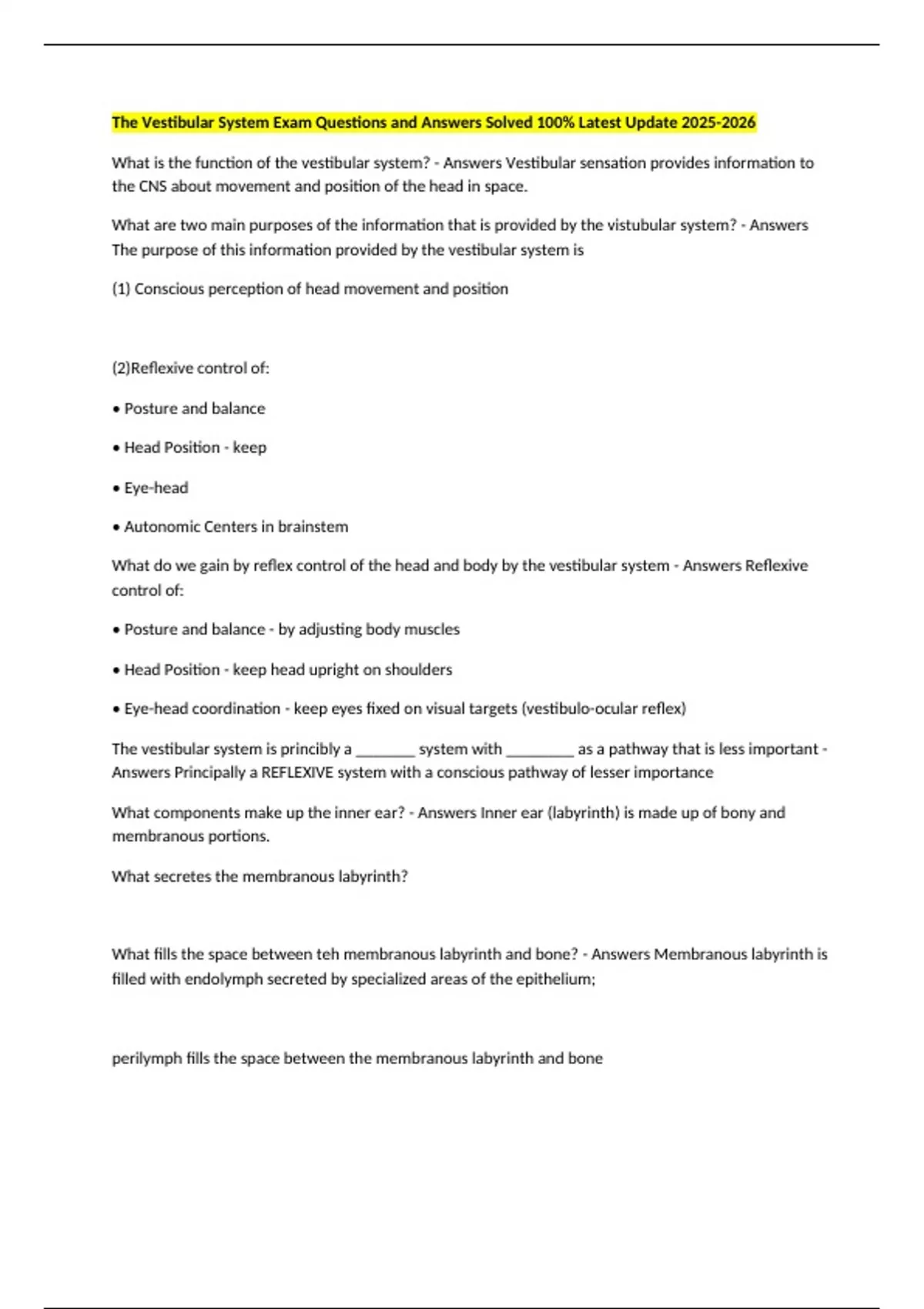 What do we gain by reflex control of the head and body by the vestibular system - Answers Reflexive
