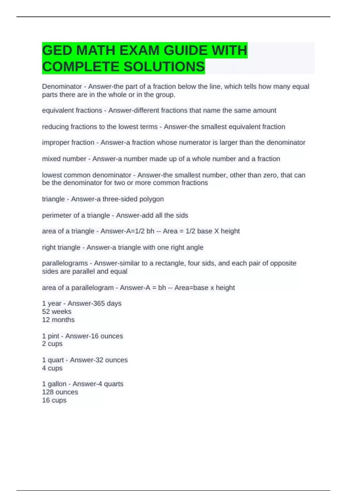 GED MATH EXAM GUIDE WITH COMPLETE SOLUTIONS